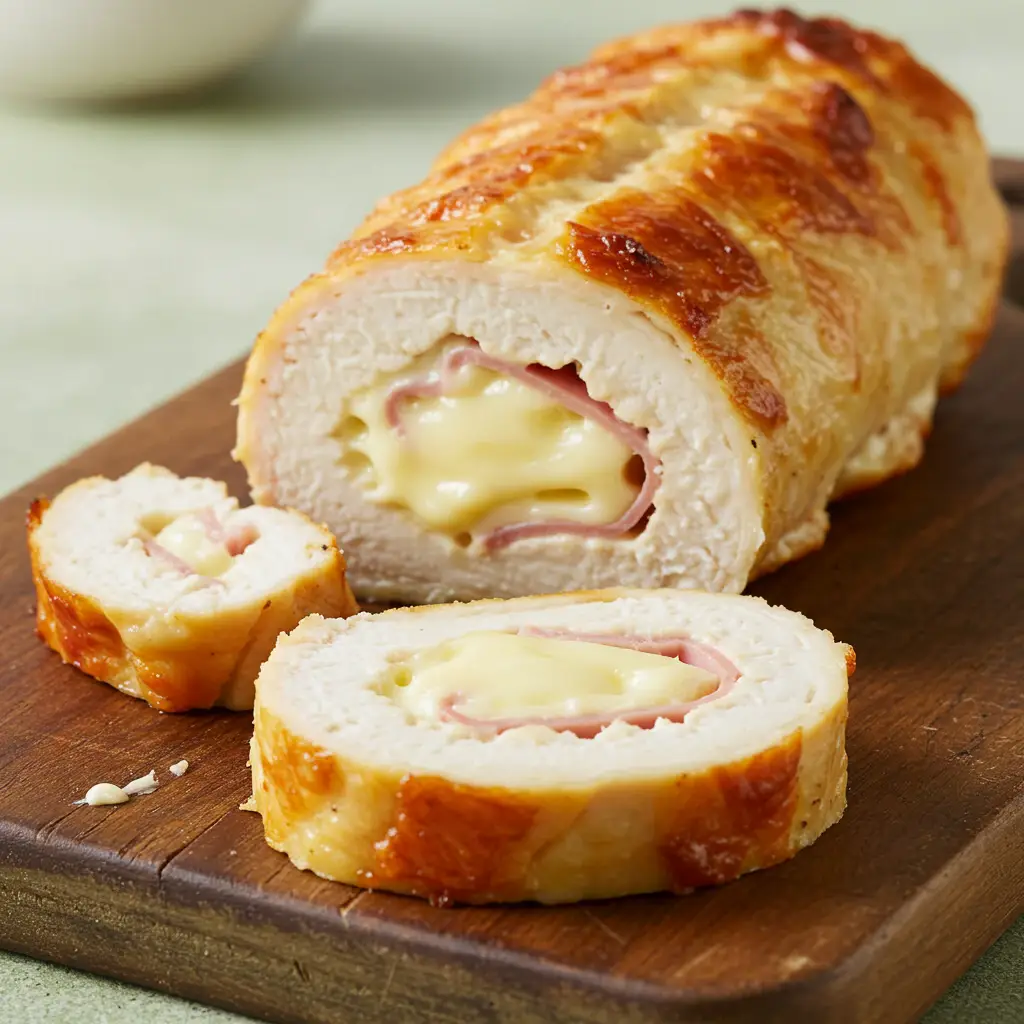 Delicioso rocambole de peito de frango suculento, recheado com mussarela, presunto e bacon, temperado com ervas e finalizado com um toque especial de vinagre de maçã. Acompanha perfeitamente um arroz temperado e maionese caseira.