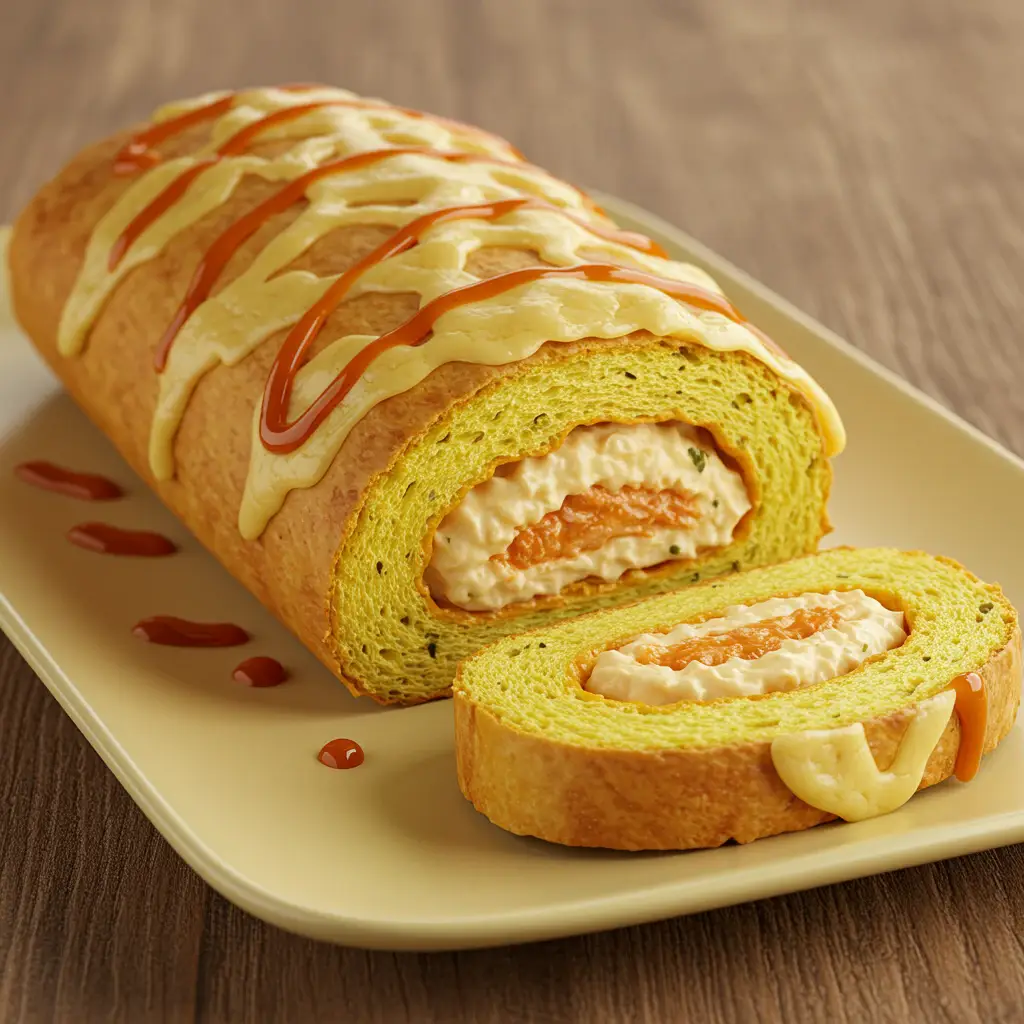 Um rocambole de dar água na boca! Massa leve e aerada, recheio cremoso de presunto e queijo, gratinado com perfeição. Uma explosão de sabores que vai surpreender seus convidados.