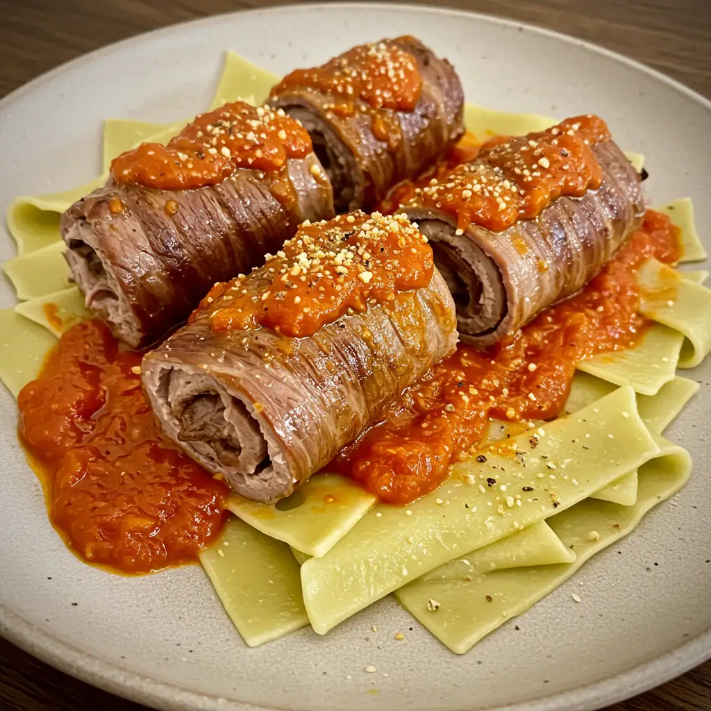 Um clássico bife à rolê, com o sabor defumado do bacon e o toque adocicado da cenoura. Carne macia e suculenta, perfeita para um almoço especial em família. Sirva com um delicioso nhoque ou arroz branco.