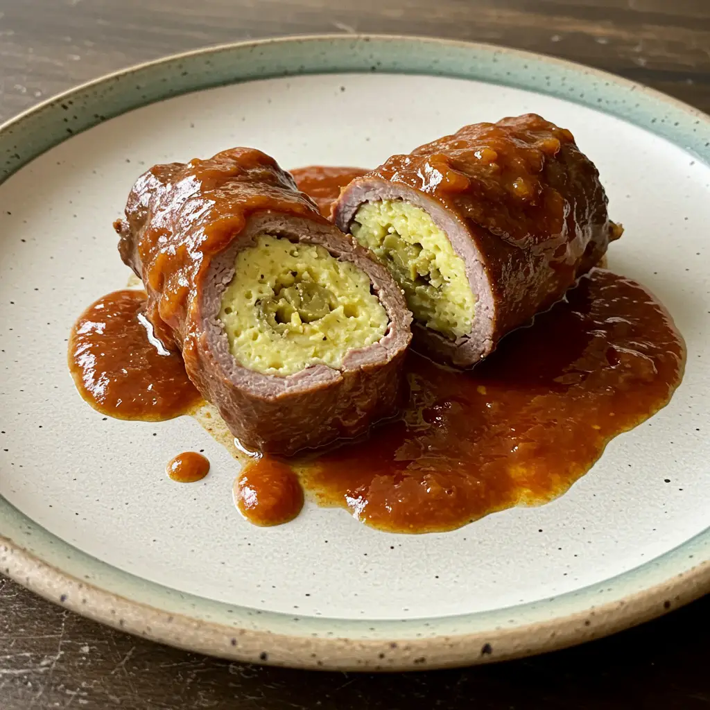 Deliciosos rolinhos de coxão mole recheados com presunto e azeitonas, em um molho suculento de tomate e cebola. Uma receita prática e saborosa da culinária brasileira, perfeita para um almoço especial.