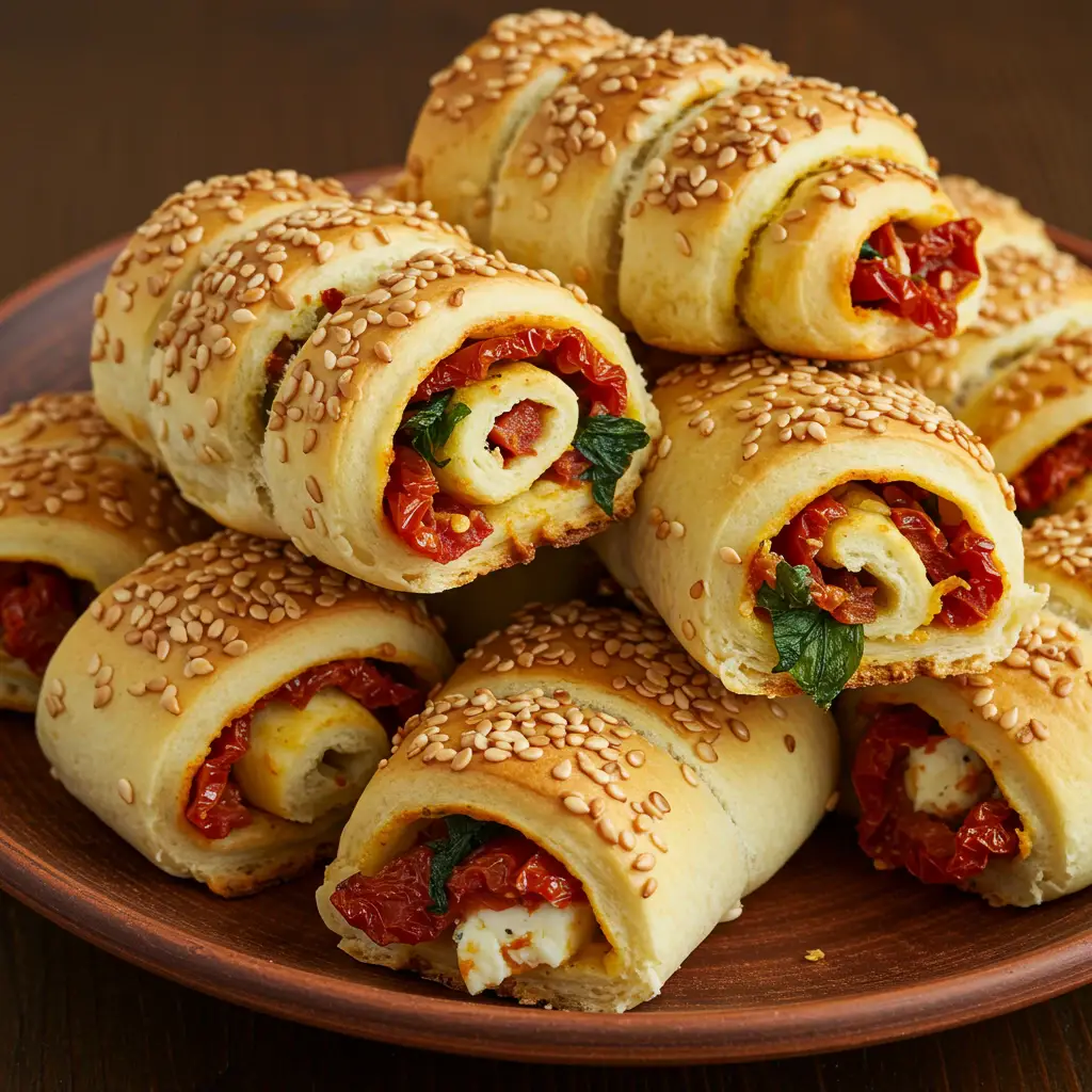 Rolinhos de Pão com Tomate Seco e Rúcula