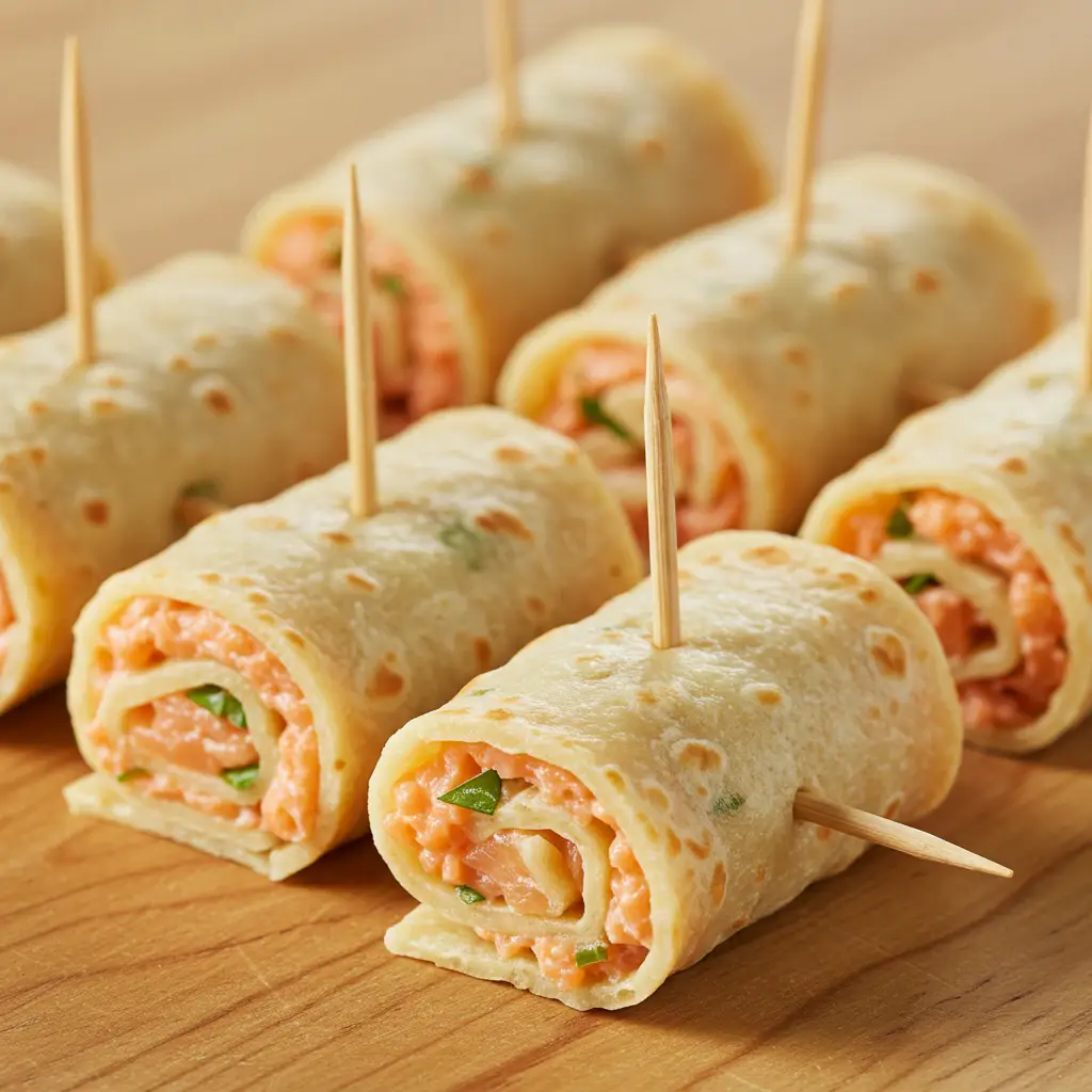 Deliciosos rolinhos crocantes de pão sírio recheados com salsicha de frango, queijo cheddar e salsinha. Uma receita fácil e perfeita para um lanche ou aperitivo.