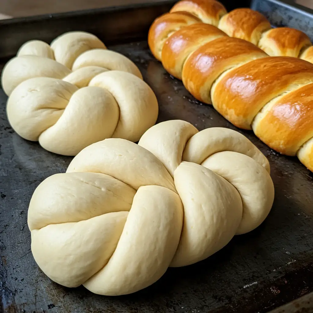 Modele a massa em formato de roscas e disponha-as em uma forma untada e enfarinhada.