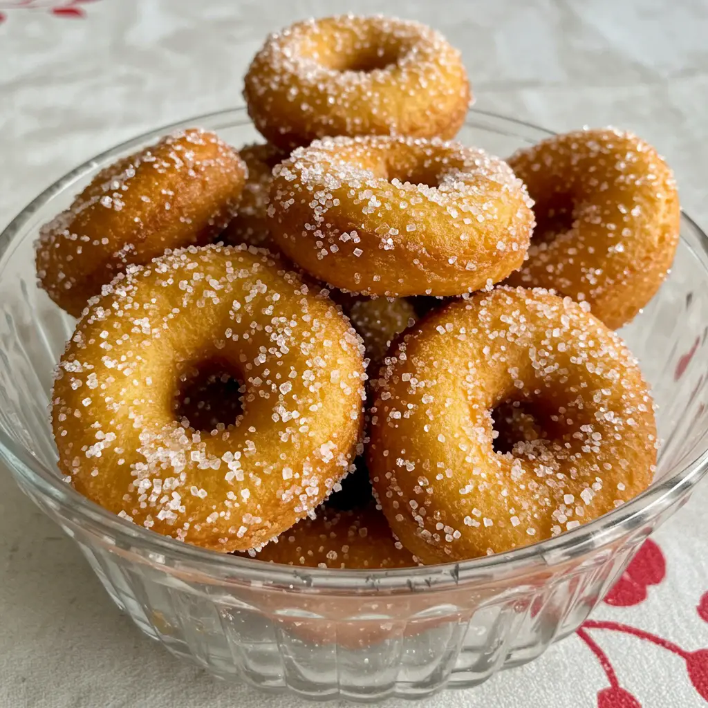Deliciosas rosquinhas fritas, macias por dentro e levemente crocantes por fora. Cobertas com açúcar refinado, um doce irresistível para um lanche da tarde ou café. Uma receita simples e saborosa, perfeita para toda a família.