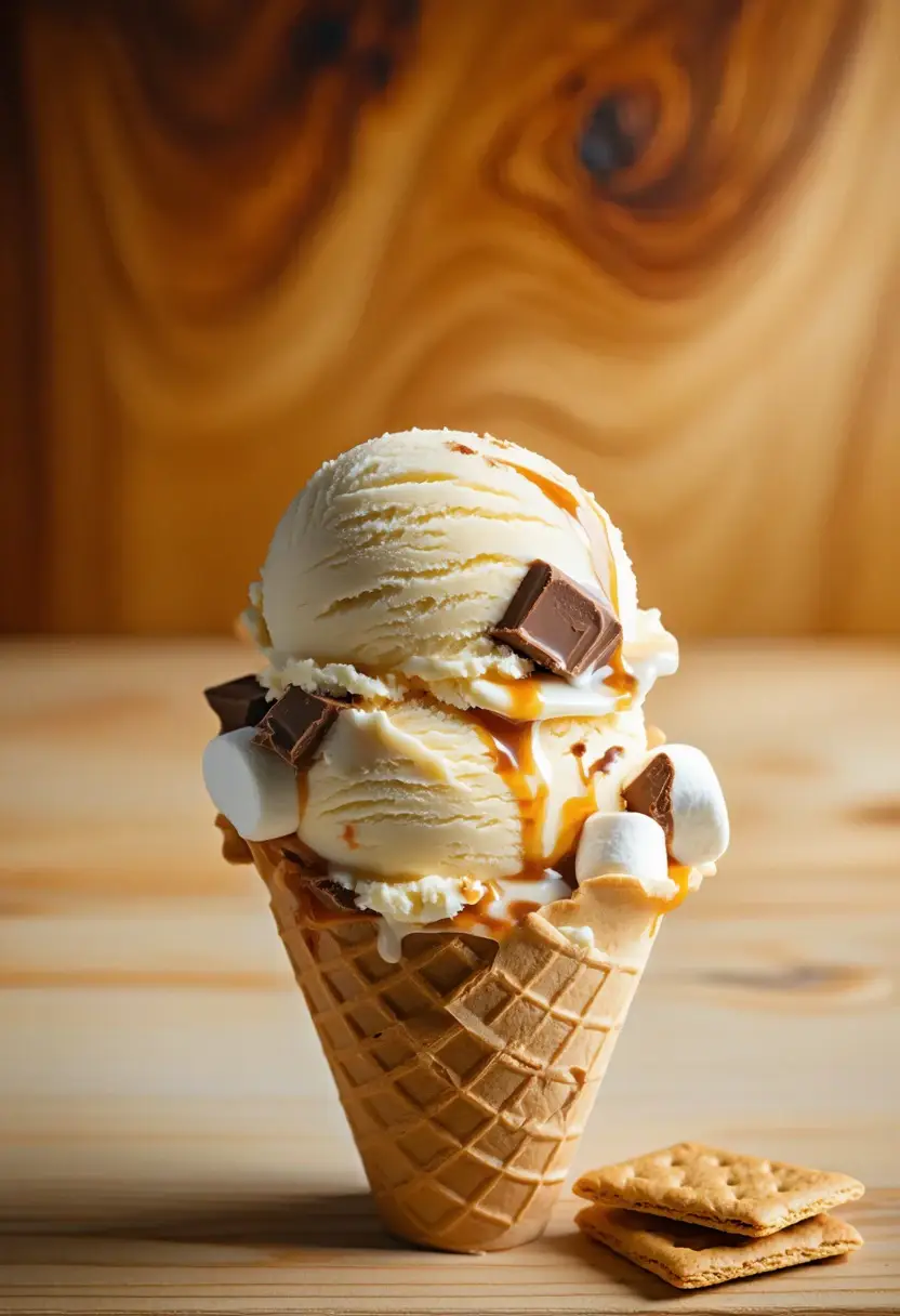 Sirva o Sorvete de S'mores em tigelas ou cones e aproveite!