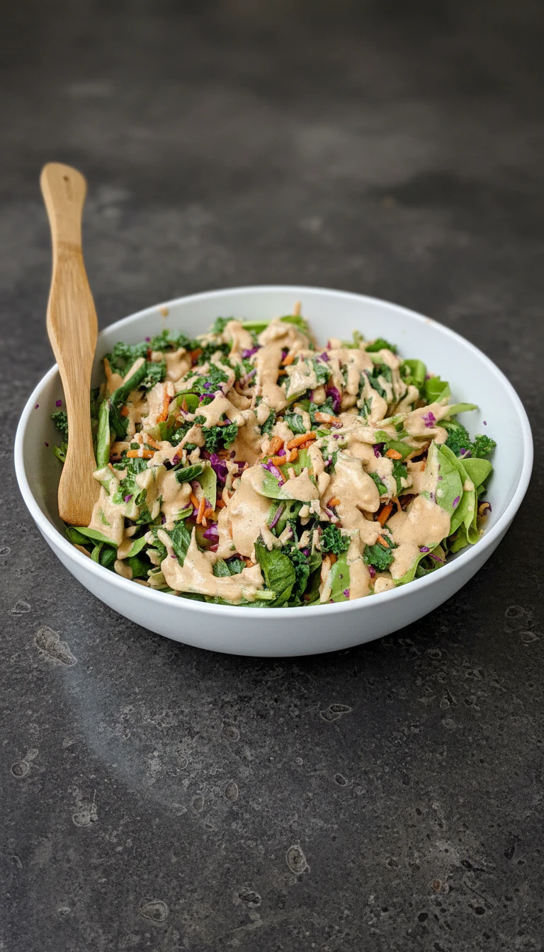 Uma salada leve e refrescante, perfeita para um almoço ou jantar. O molho cremoso de amendoim adiciona um toque especial e saboroso aos vegetais crocantes.
