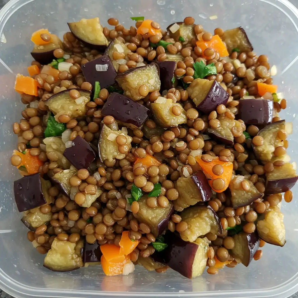 Uma salada leve e saborosa, perfeita para um almoço fresco e nutritivo. A combinação da berinjela grelhada com a lentilha cozida e ervas frescas resulta em um prato cheio de sabor e textura.