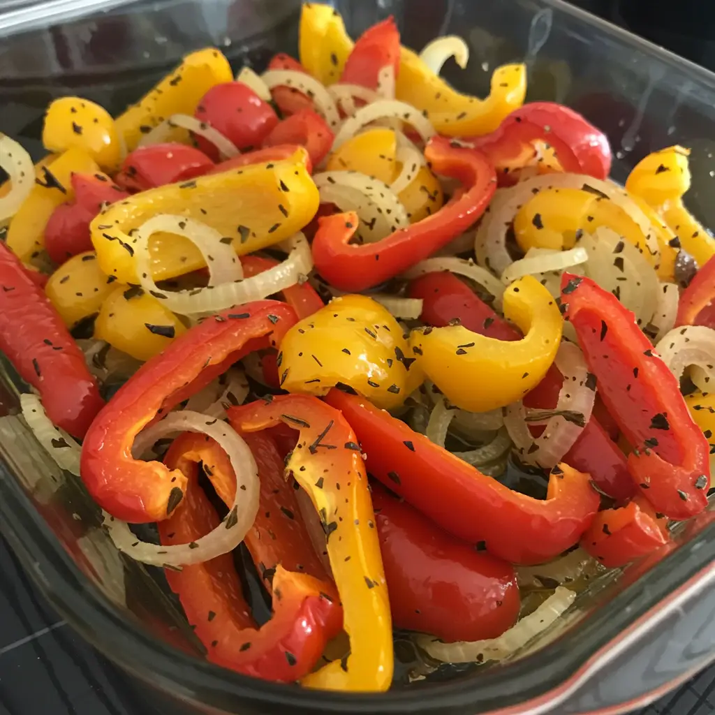 Uma salada colorida e saborosa, perfeita para um almoço leve ou acompanhamento de carnes grelhadas. As berinjelas e pimentões ficam macios e saborosos, com um toque de vinagre e orégano. Uma receita simples e deliciosa!