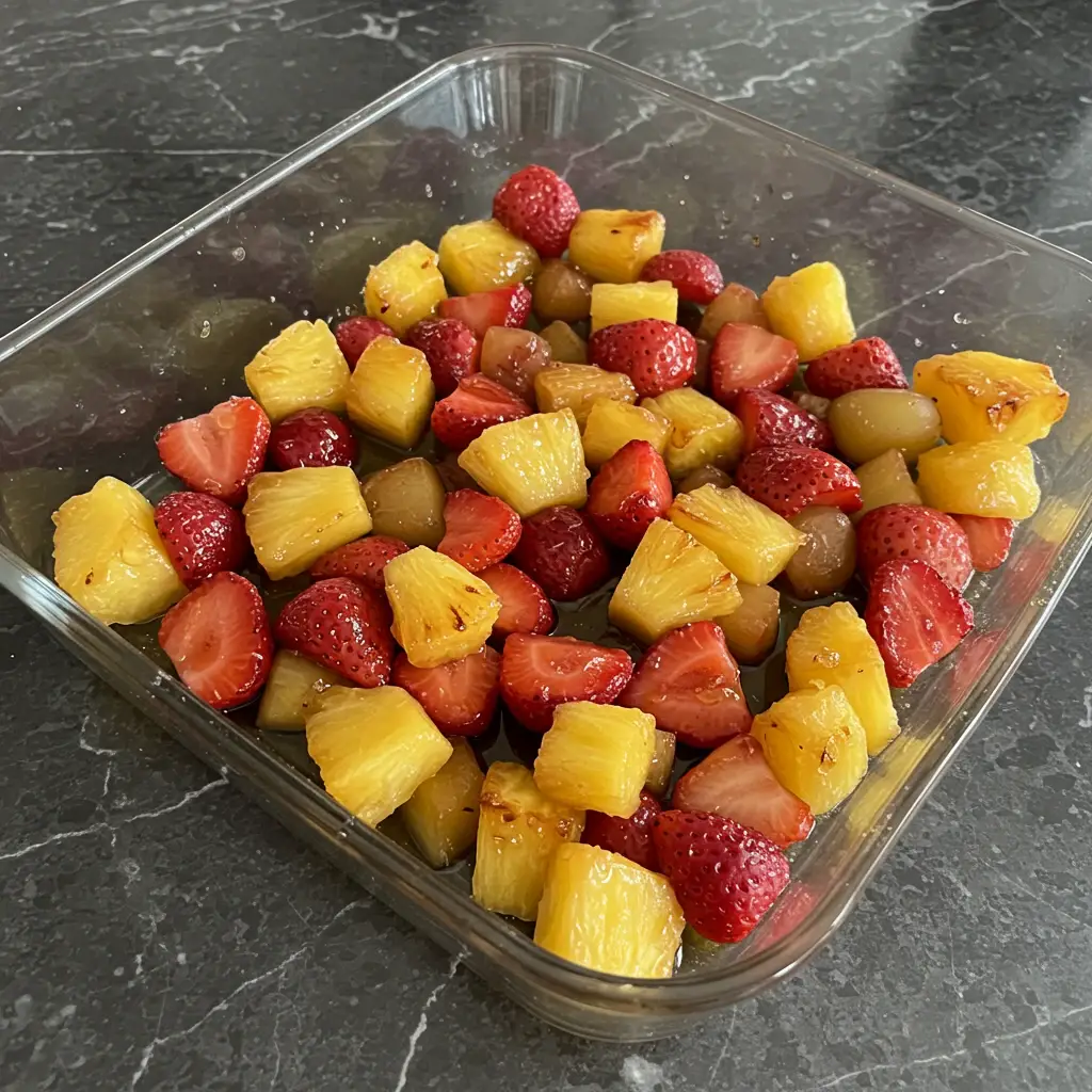 Uma salada de frutas tropical com toque especial! As frutas assadas ganham um sabor caramelizado delicioso, perfeita para um almoço leve ou sobremesa sofisticada. A doçura do mel realça o sabor natural das frutas.
