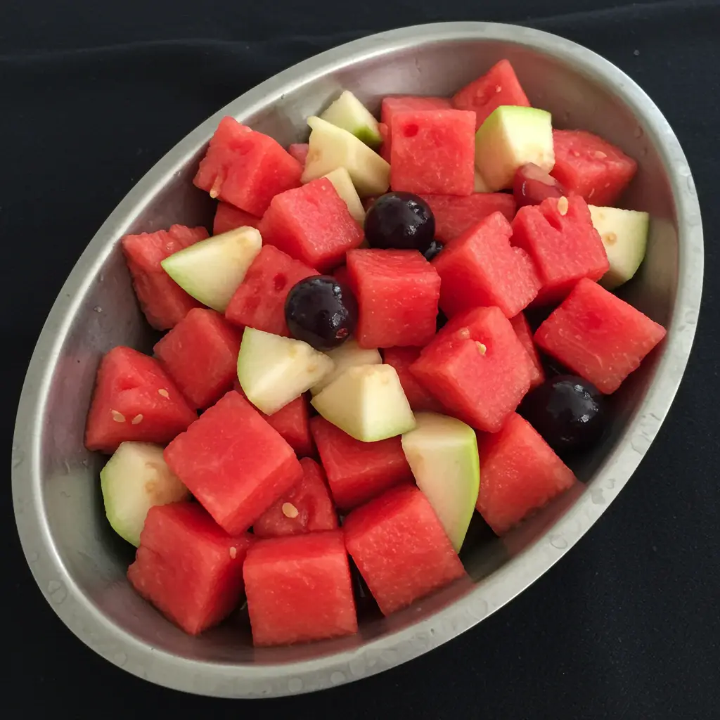 Em uma tigela grande, misture delicadamente todas as frutas.