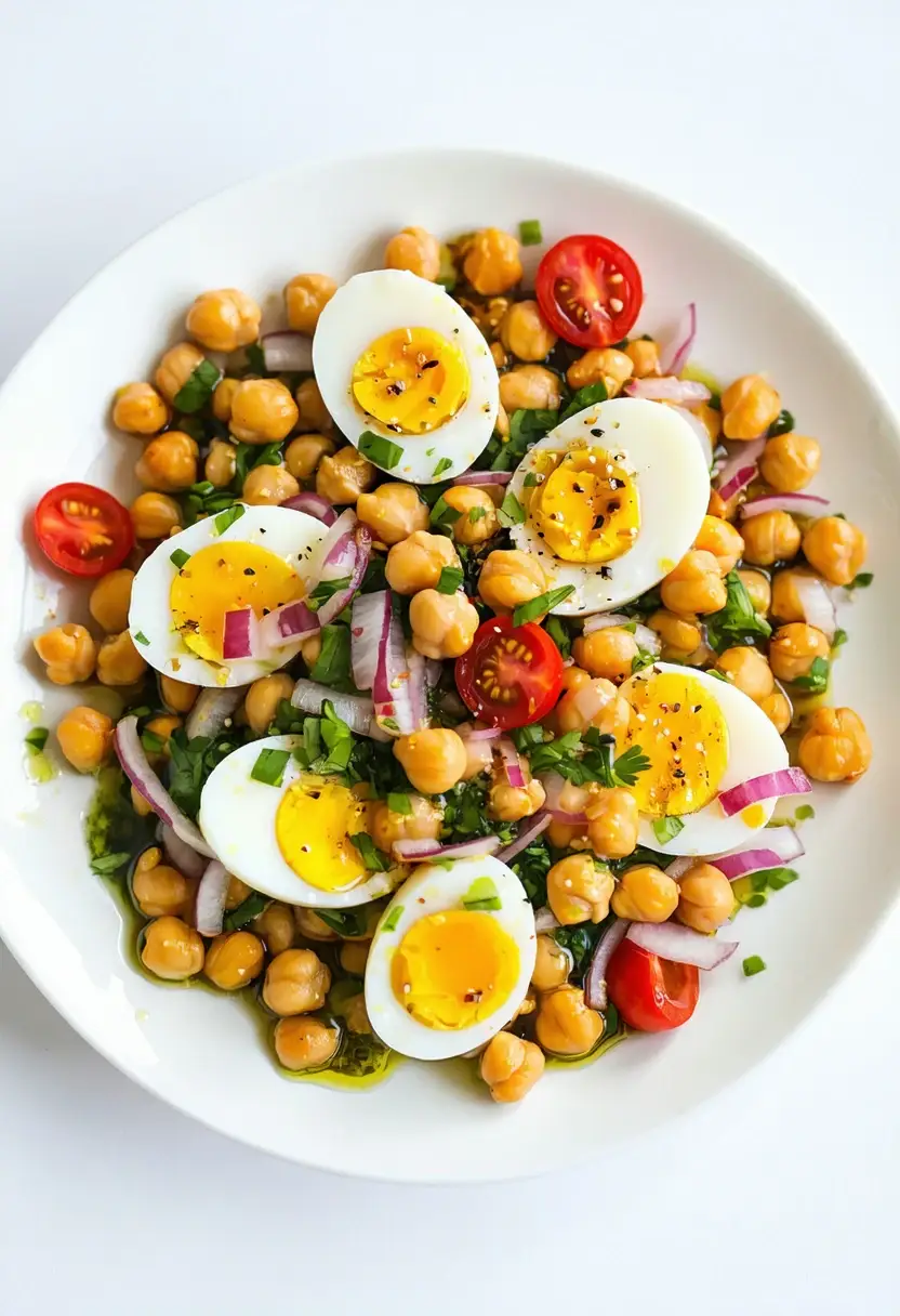 Salada de grão-de-bico com ovo de codorna? Facílimo de fazer, ficou show e aprovado pelos amigos! Uma explosão de sabor que vai te surpreender, galera.
