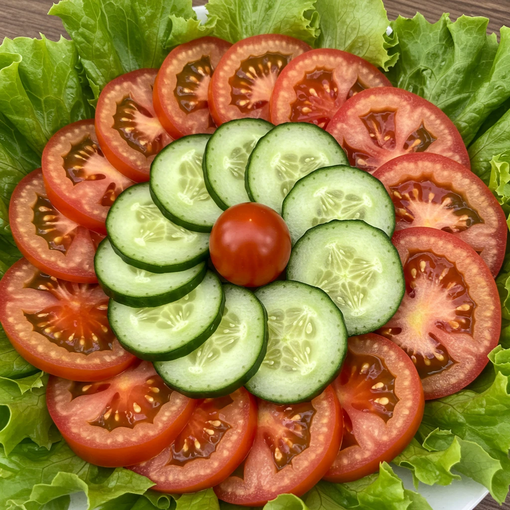 Uma salada fresca e colorida, perfeita para acompanhar refeições ou ser servida como entrada. O molho de tomate seco traz um toque especial e saboroso que combina perfeitamente com os vegetais.