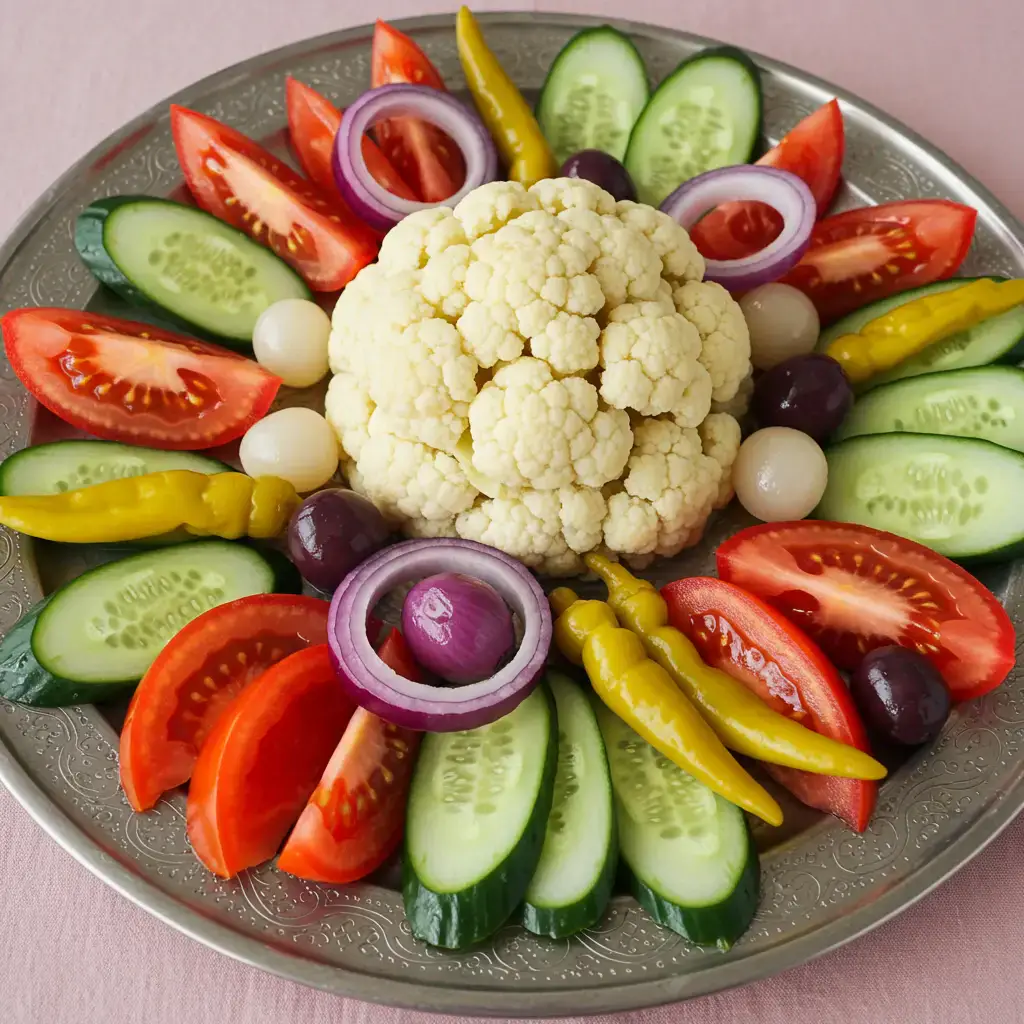 Uma salada leve e saborosa, perfeita para um almoço ou jantar. A combinação de couve-flor cozida no vapor com pepinos, pimentões e azeitonas cria uma explosão de sabores e texturas. Ideal para dias quentes!
