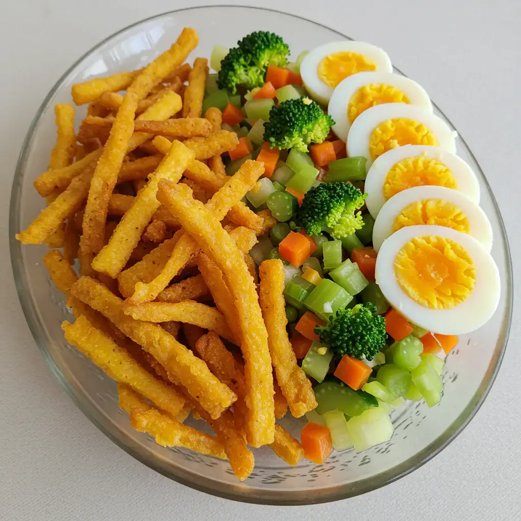 Uma salada colorida e refrescante, perfeita para um almoço leve ou um jantar informal. Combinação saborosa de frango, legumes e ovos, com toque oriental. Ideal para dias quentes!