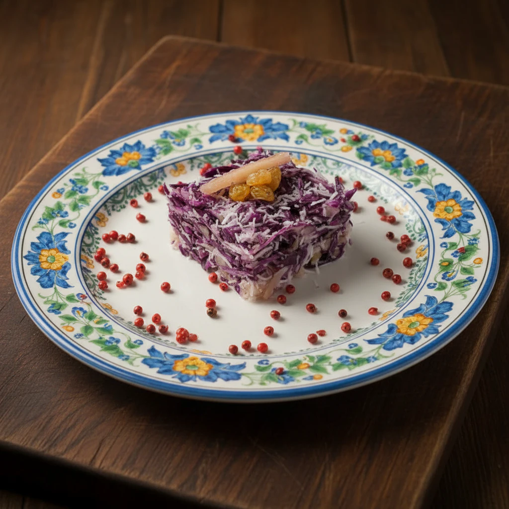Uma salada refrescante e vibrante, com o doce do abacaxi e coco combinando perfeitamente com o leve adocicado do repolho roxo e a acidez das uvas-passas. Um toque de sabor pernambucano na sua mesa!