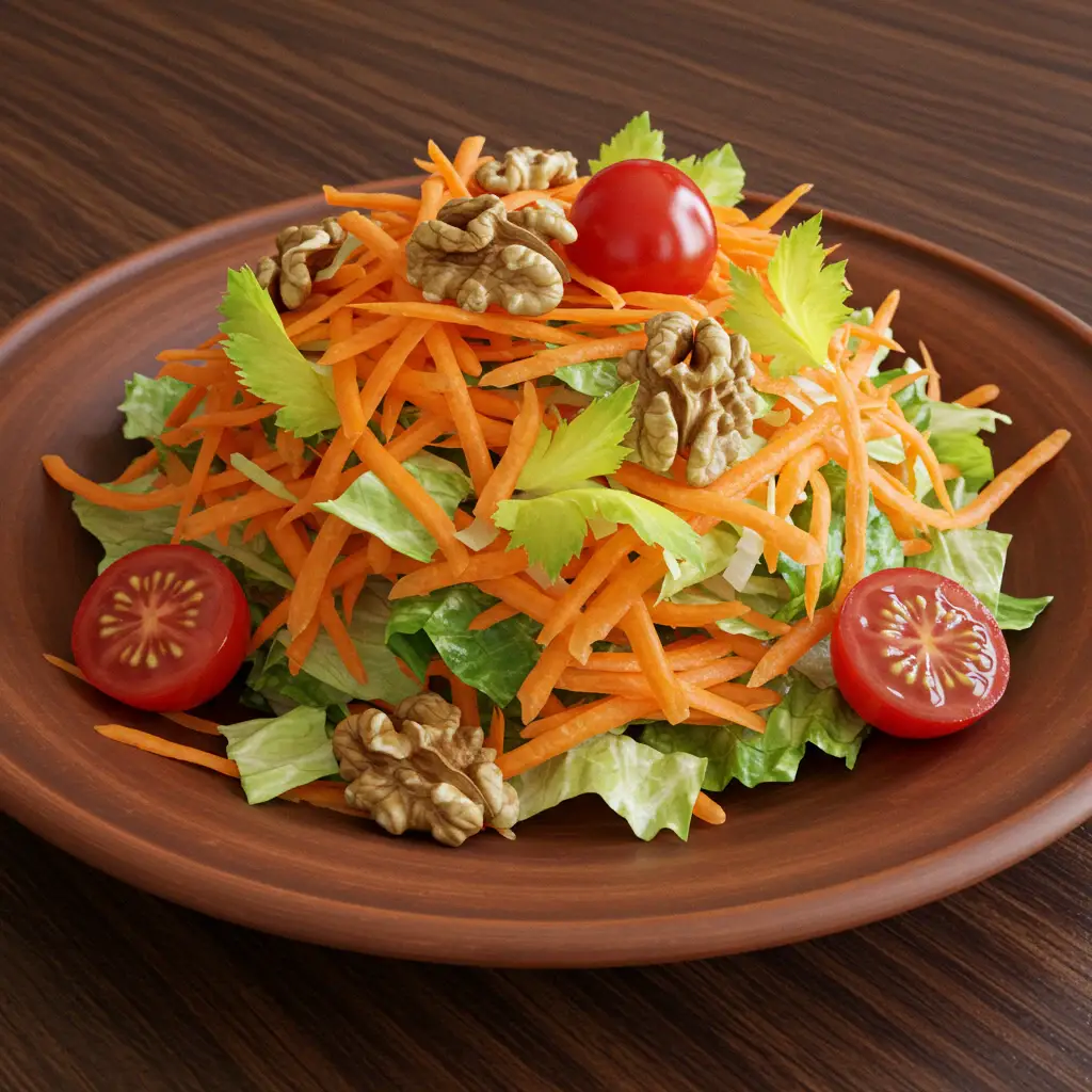Uma salada leve e crocante, perfeita para um almoço ou jantar rápido. O sabor suave da alface americana se harmoniza com a doçura das cenouras e o toque crocante das nozes.