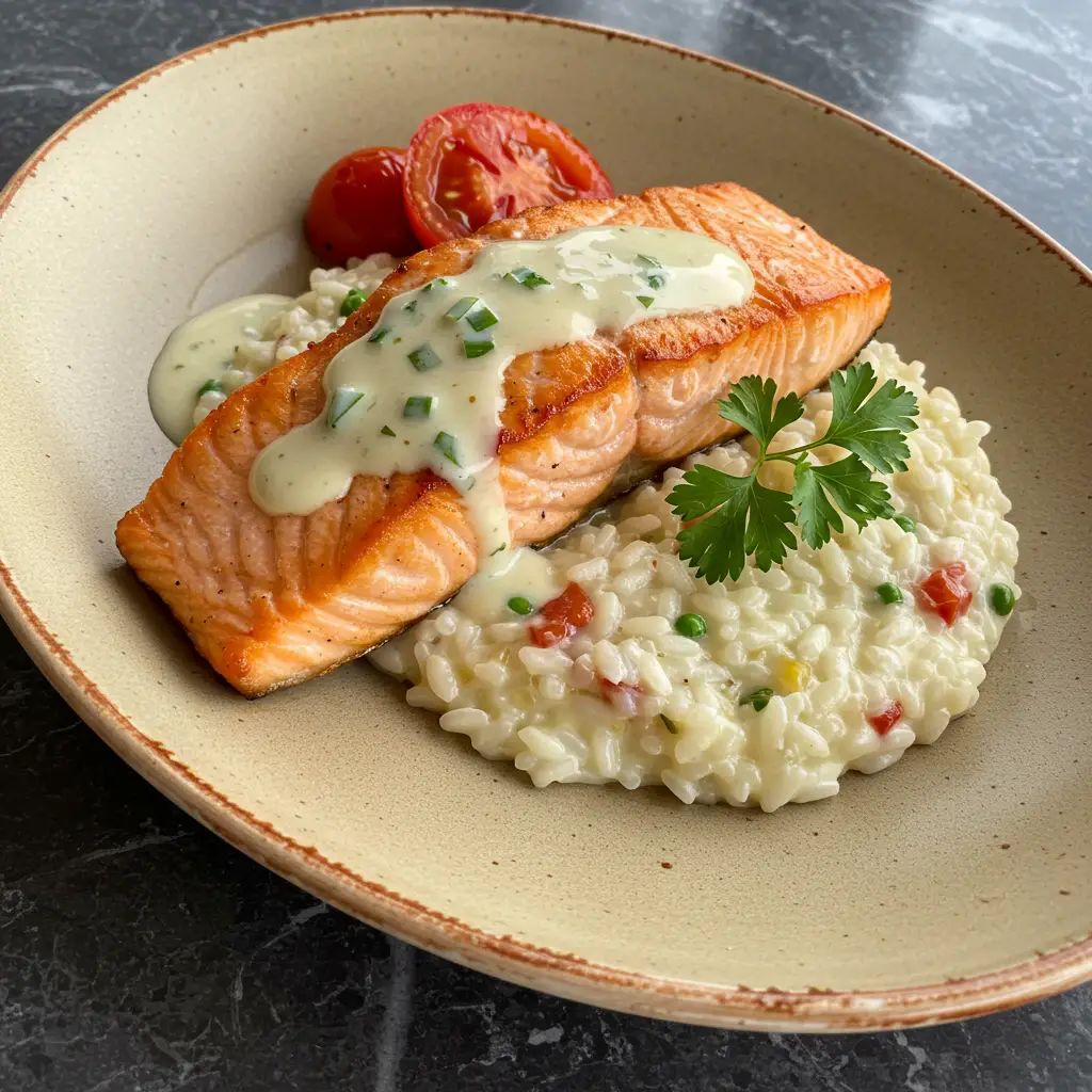 Salmão com Risotto de Palmito e Erva-Doce