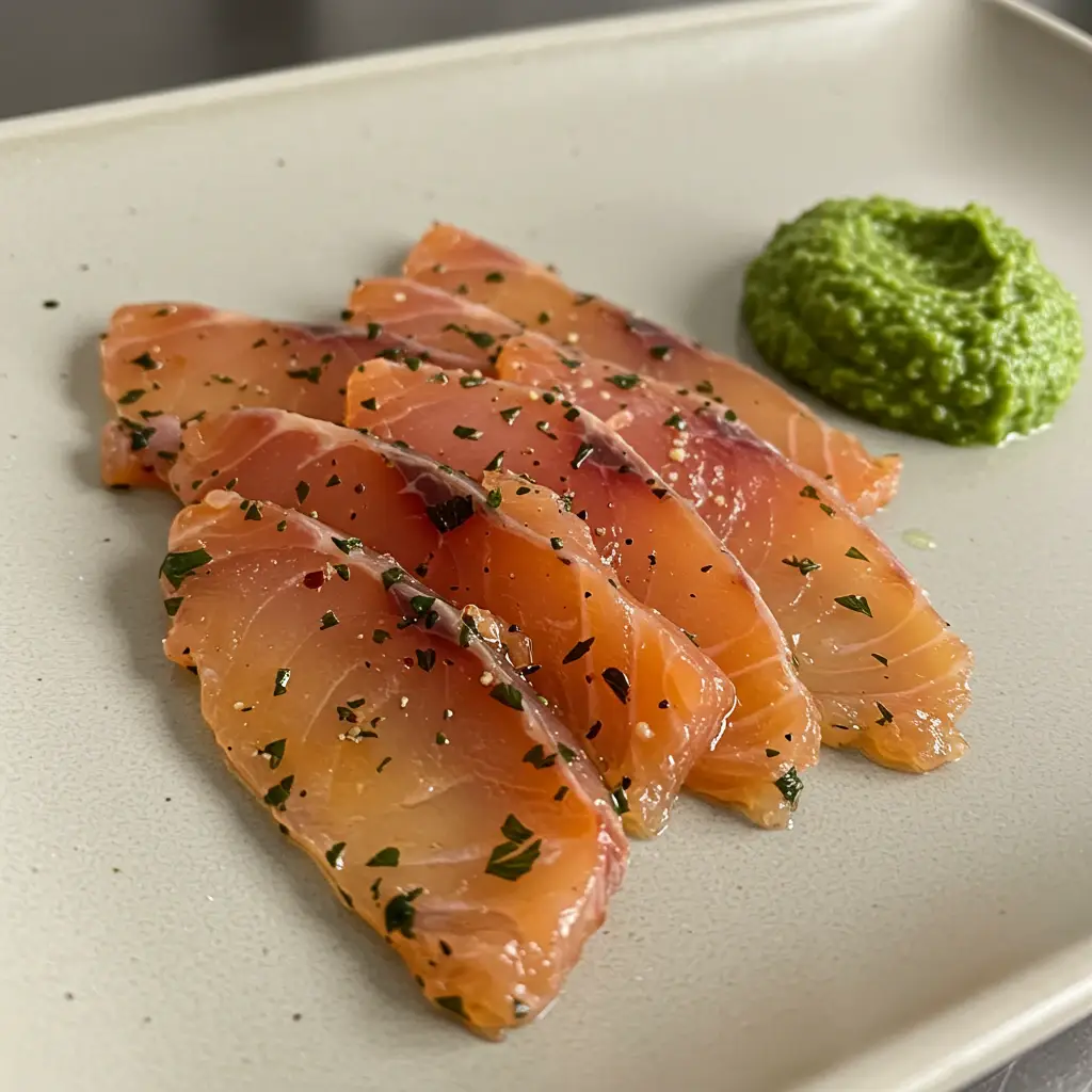 Delicioso salmão curado em casa, com um toque brasileiro. A combinação de endro fresco e especiarias resulta em um sabor marcante e sofisticado, perfeito para entradas ou petiscos.