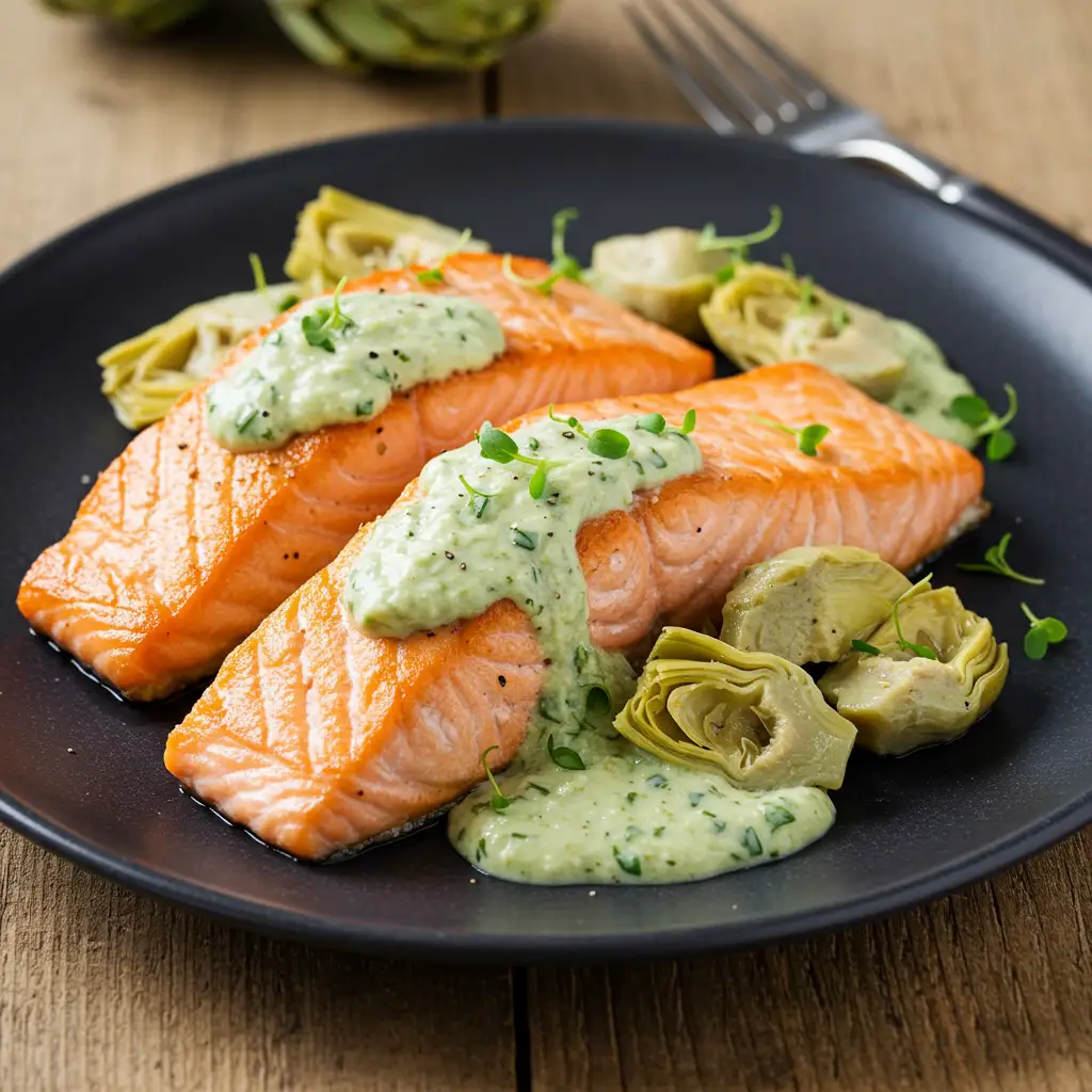 Salmão Grelhado com Alcachofra e Molho Cremoso