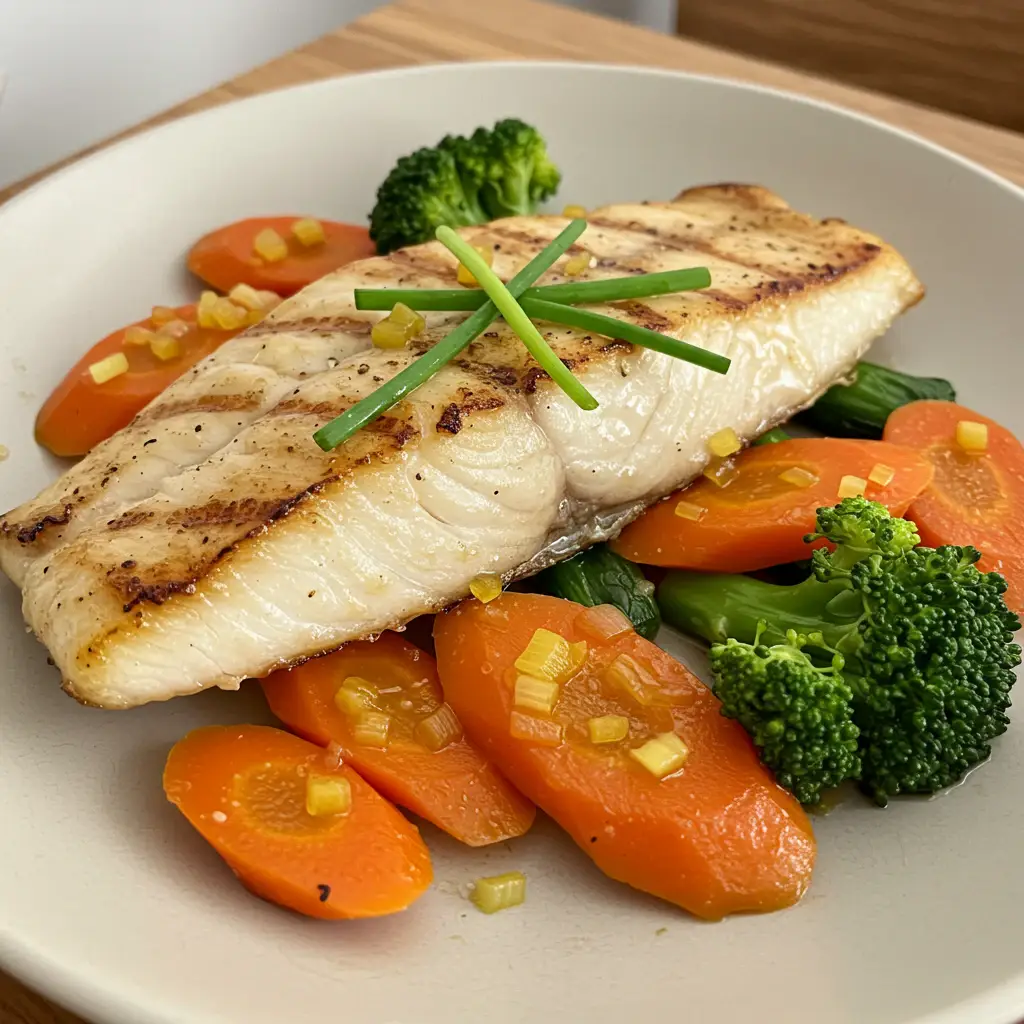 Um prato leve e saboroso, perfeito para um jantar especial. Salmão grelhado com legumes frescos, finalizado com um toque de saquê e shoyu.