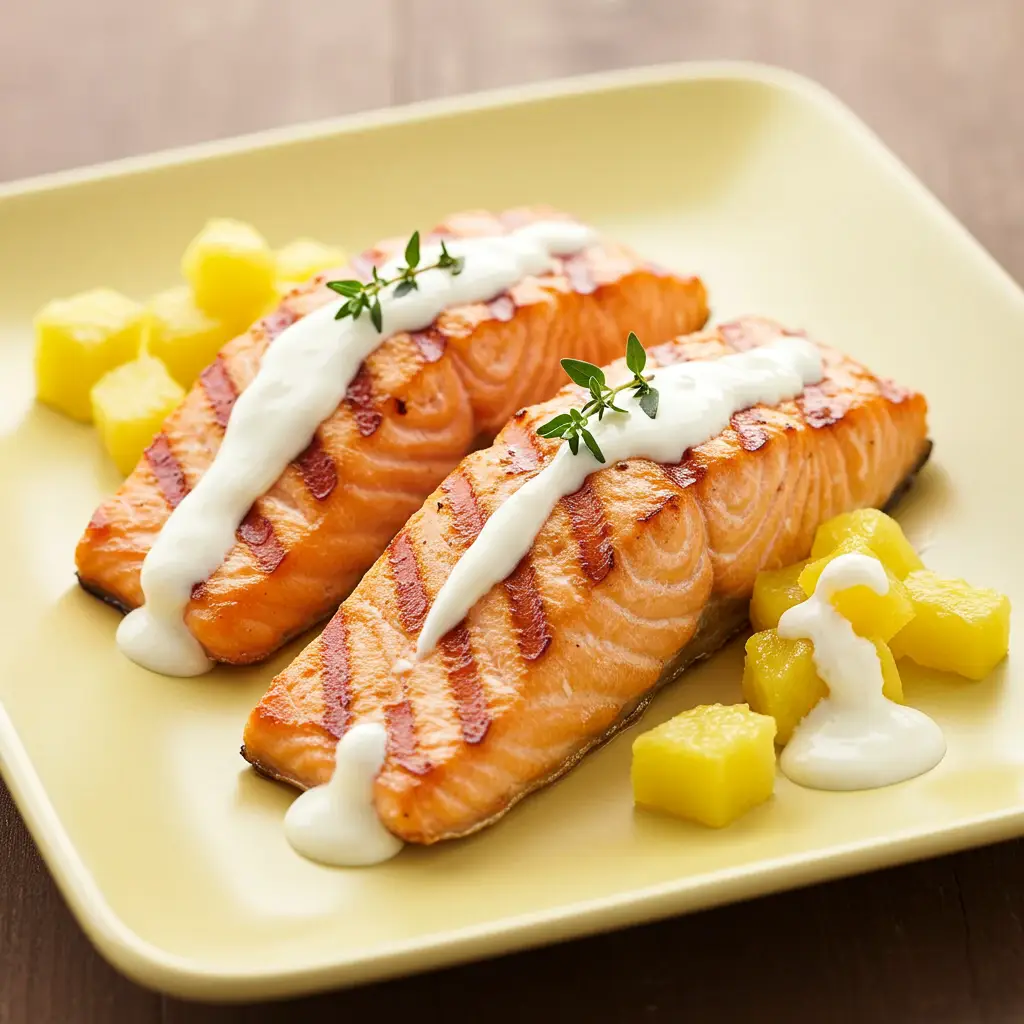 Salmão Grelhado com Molho de Abacaxi e Cogumelos