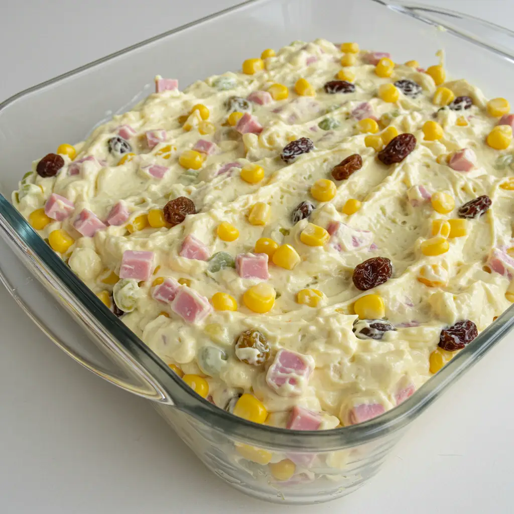 Um salpicão cremoso e saboroso, perfeito para festas e ceias! O frango desfiado se junta a maçã crocante, passas doces e um toque de mostarda, resultando em um prato inesquecível. Ideal para compartilhar com amigos e familiares.