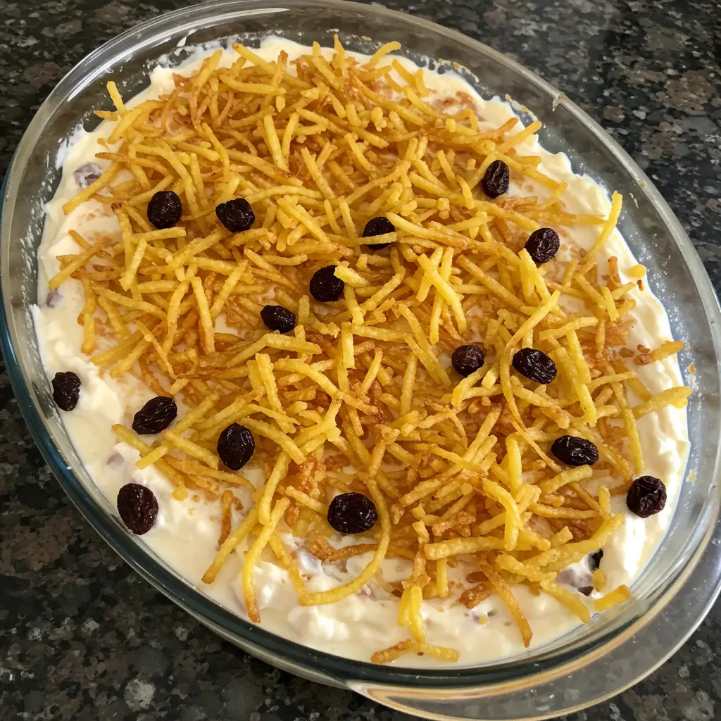 Por fim, misture a batata palha com cuidado para não esmagar. Sirva gelado.