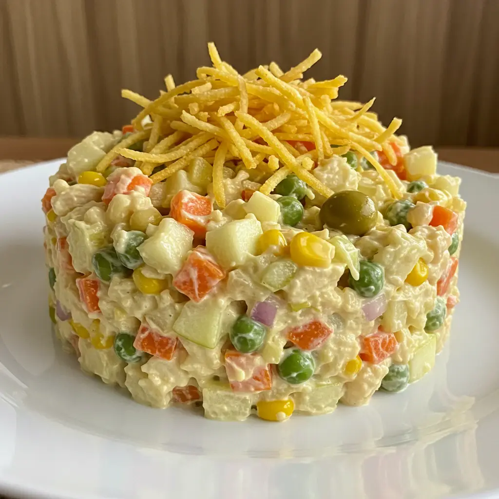 O Salpicão Delícia é uma explosão de sabores e texturas, perfeito para festas e encontros. Com ingredientes frescos e coloridos, essa salada vai conquistar seu paladar!