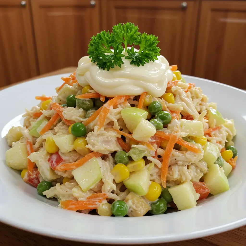 O Salpicão Simples é uma salada refrescante e cheia de sabor, perfeita para acompanhar carnes ou como prato principal em dias quentes. Com ingredientes frescos, é uma verdadeira explosão de cores e texturas!