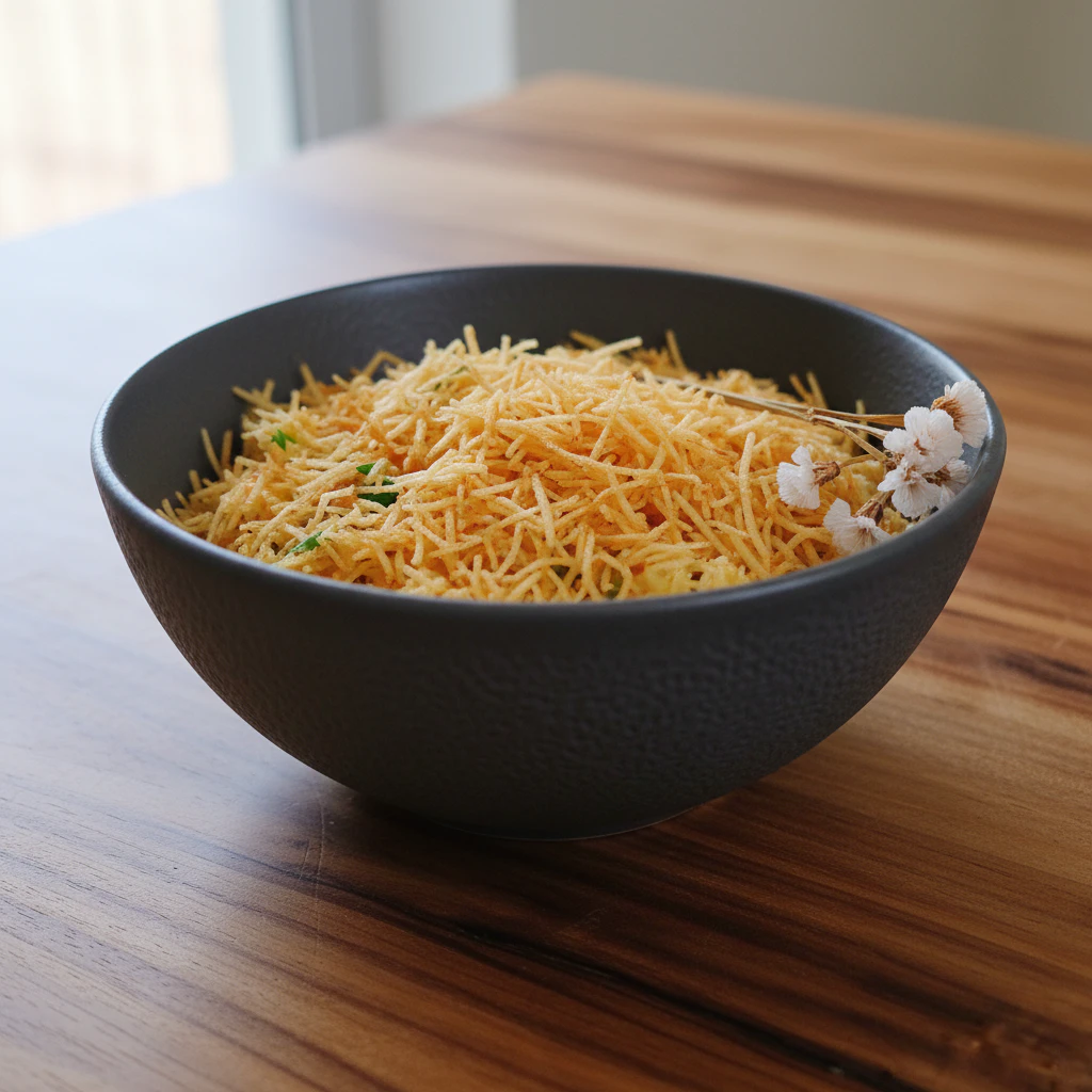 Antes de servir, salpique a batata palha e o cheiro-verde por cima.