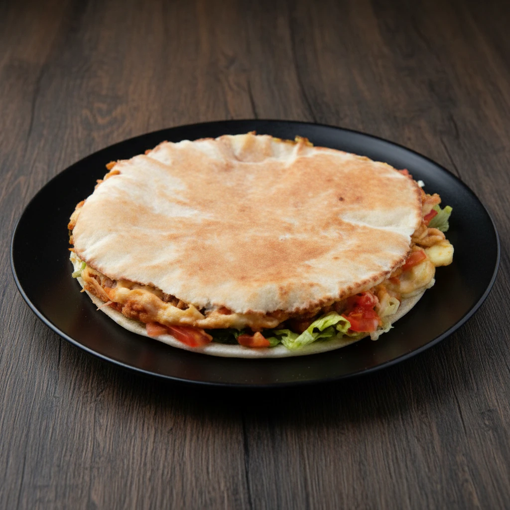 Abra o pão sírio ao meio e espalhe a maionese em ambas as partes.
