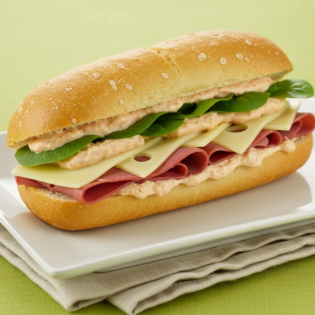 Um sanduíche sofisticado e saboroso! Ciabatta crocante, rosbife macio, Gruyère derretido e uma maionese picante irresistível. Perfeito para um almoço rápido e elegante.