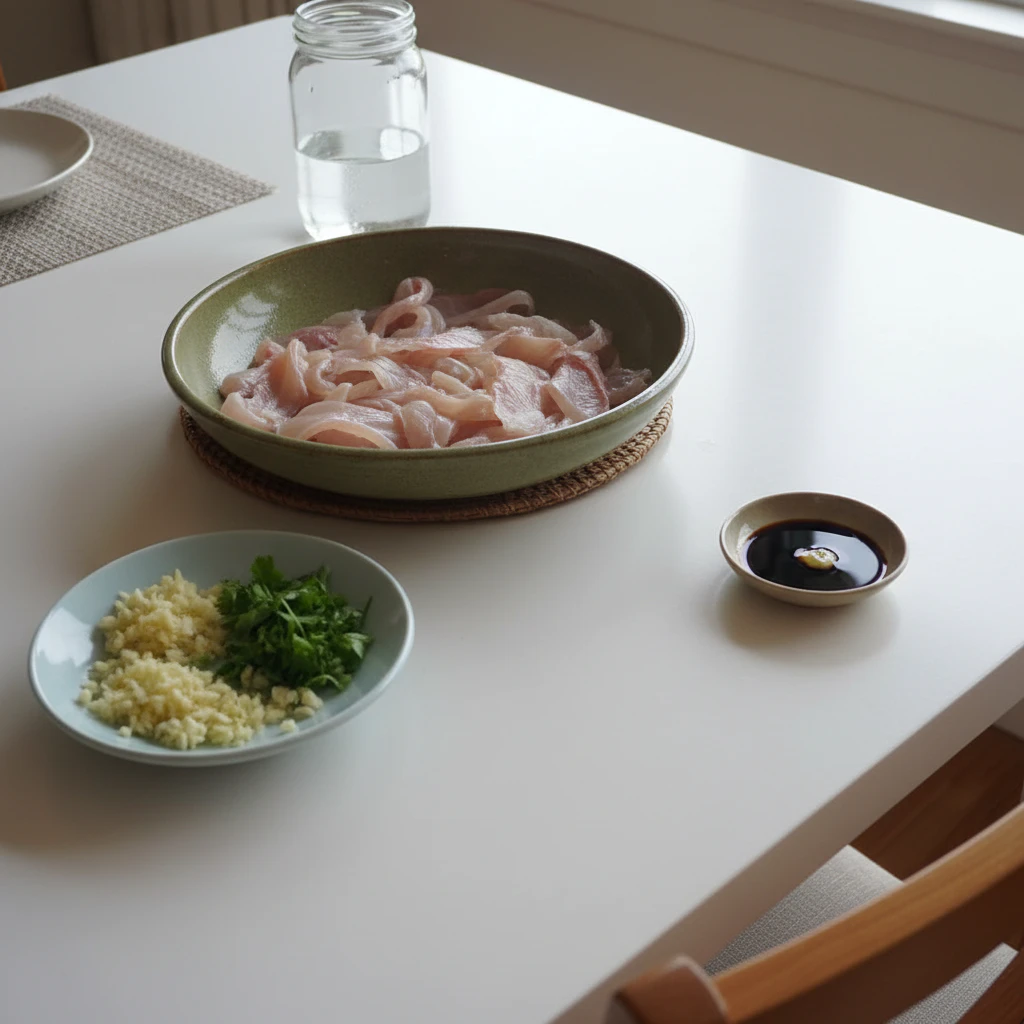 10. Em um prato ou tábua, disponha as tiras de repolho e, sobre elas, as fatias de sashimi.