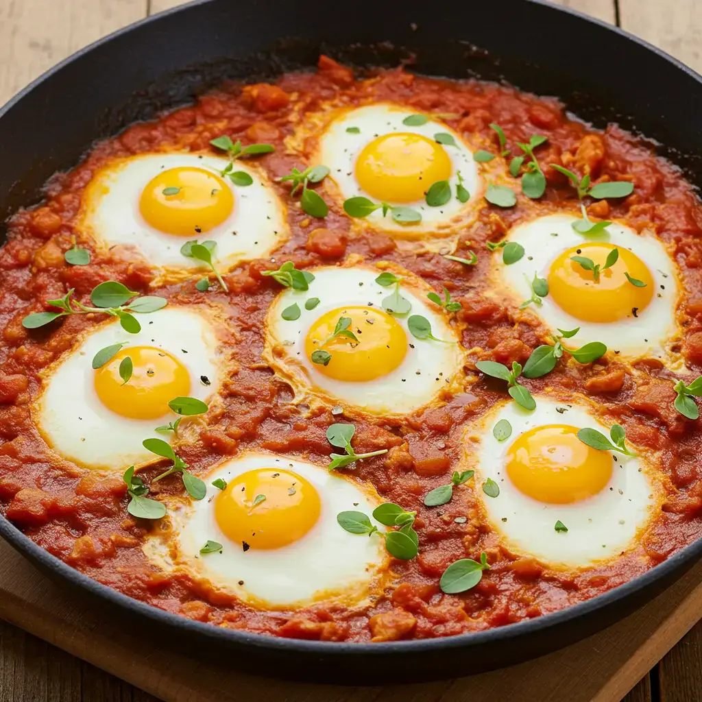 Um delicioso shakshuka, prato típico do Oriente Médio, com um toque brasileiro. Frango suculento, tomates frescos e ovos perfeitamente cozidos, tudo em uma só panela. Uma explosão de sabores que vai te surpreender!
