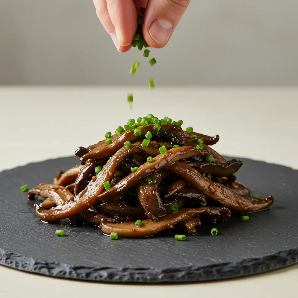 Sirva em seguida, mantendo o shimeji com uma textura firme e macia. Evite cozinhar demais.