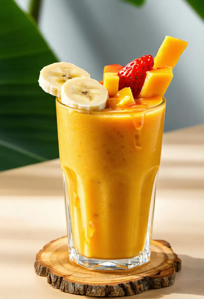 Refresque-se com este delicioso smoothie de frutas, cremoso e cheio de sabor! Uma explosão de frescor e nutrientes, perfeito para qualquer hora do dia.