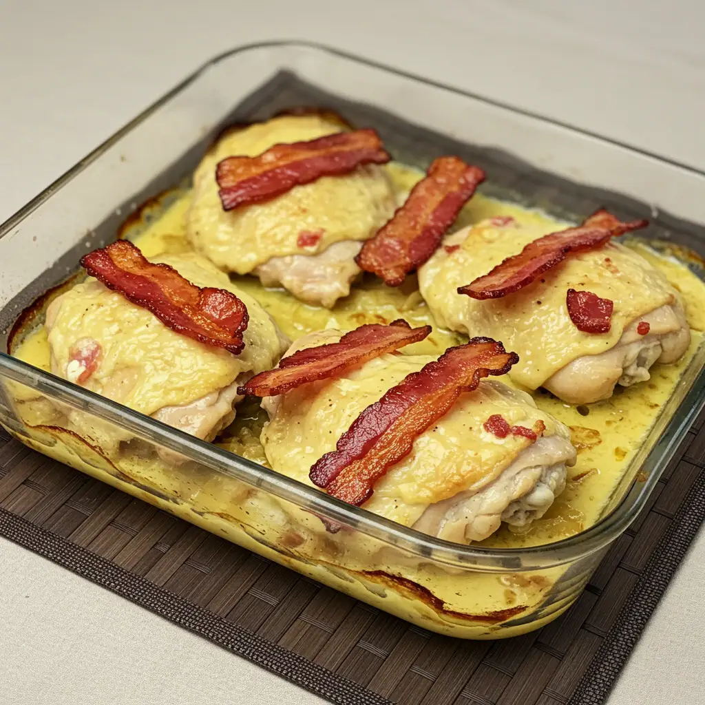 Deliciosas sobrecoxas de frango desossadas, envoltas em bacon crocante e um irresistível creme de maionese e sopa de cebola. Uma receita fácil e saborosa para o seu almoço ou jantar.