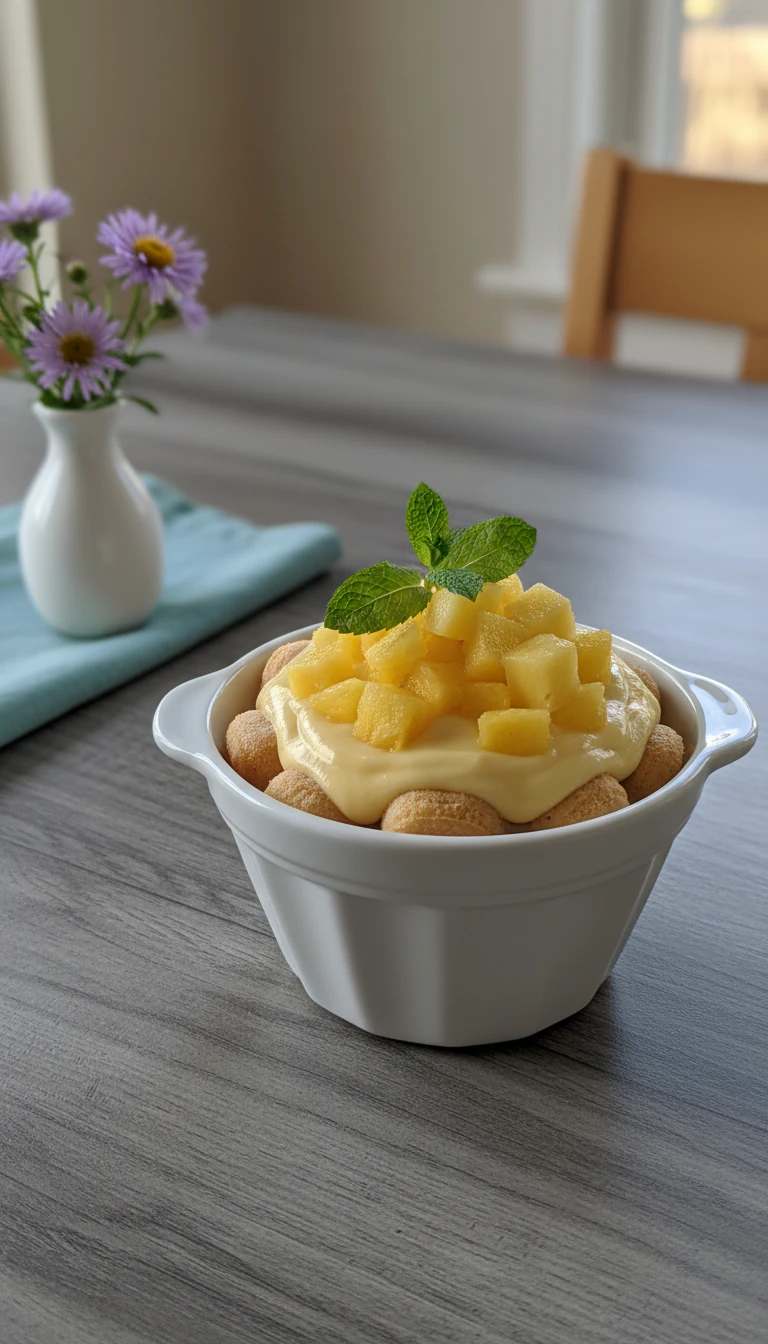 Uma sobremesa refrescante e fácil de preparar! Camadas de biscoito champagne umedecido em calda de abacaxi, um delicioso creme e chantilly, finalizado com coco ralado. Perfeita para um final de tarde especial.