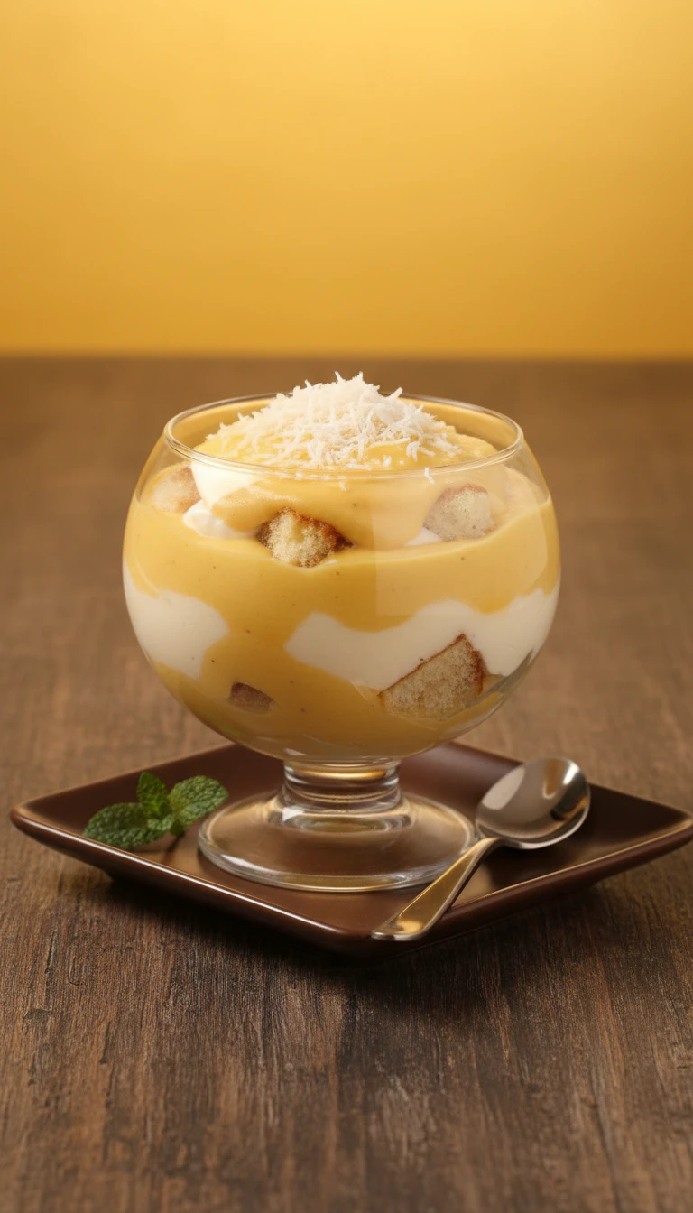 Uma explosão de sabores tropicais! Deliciosa combinação de bolo de abacaxi macio, cocada cremosa de maracujá e refrescante sorvete de coco com abacaxi. Uma sobremesa perfeita para os dias quentes.