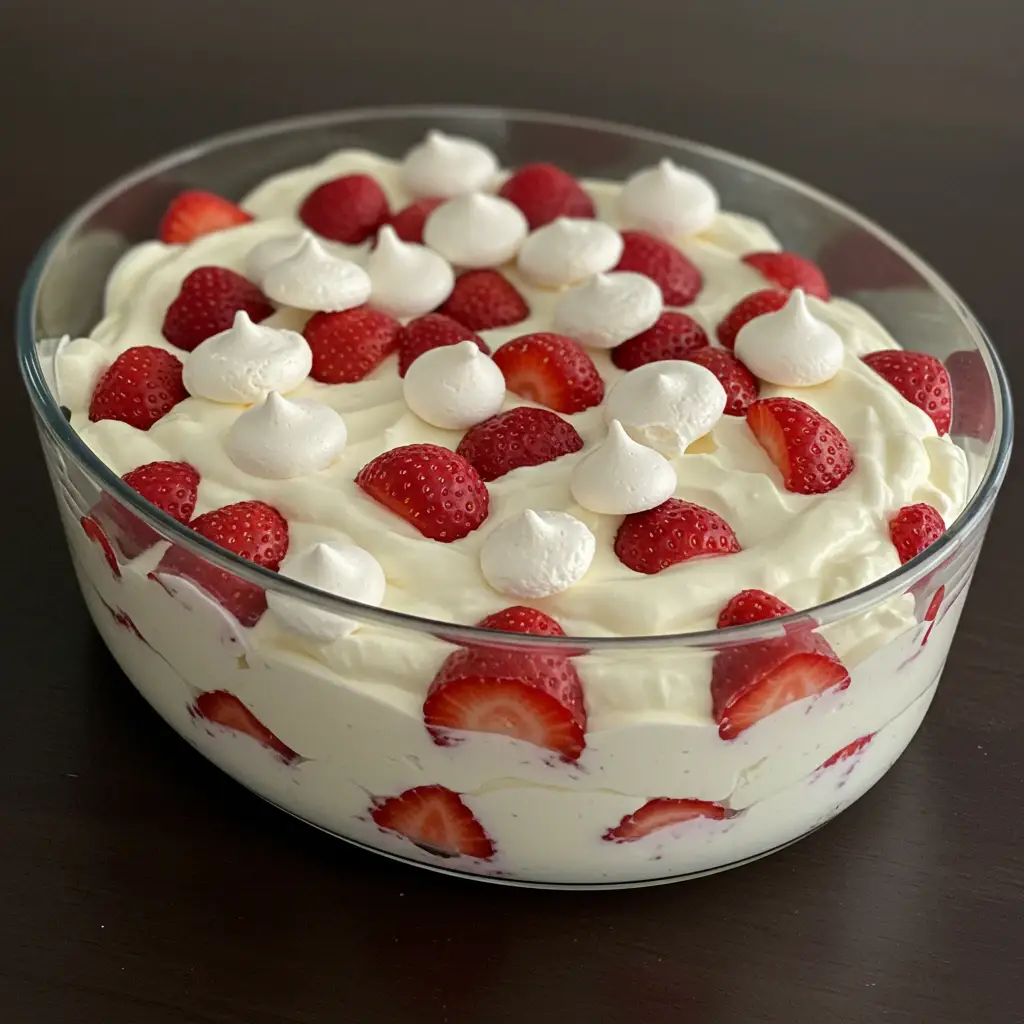 Uma sobremesa leve e refrescante, perfeita para os dias quentes! O doce sabor dos morangos frescos se junta à cremosidade do creme de leite e à doçura dos suspiros, criando uma combinação irresistível.