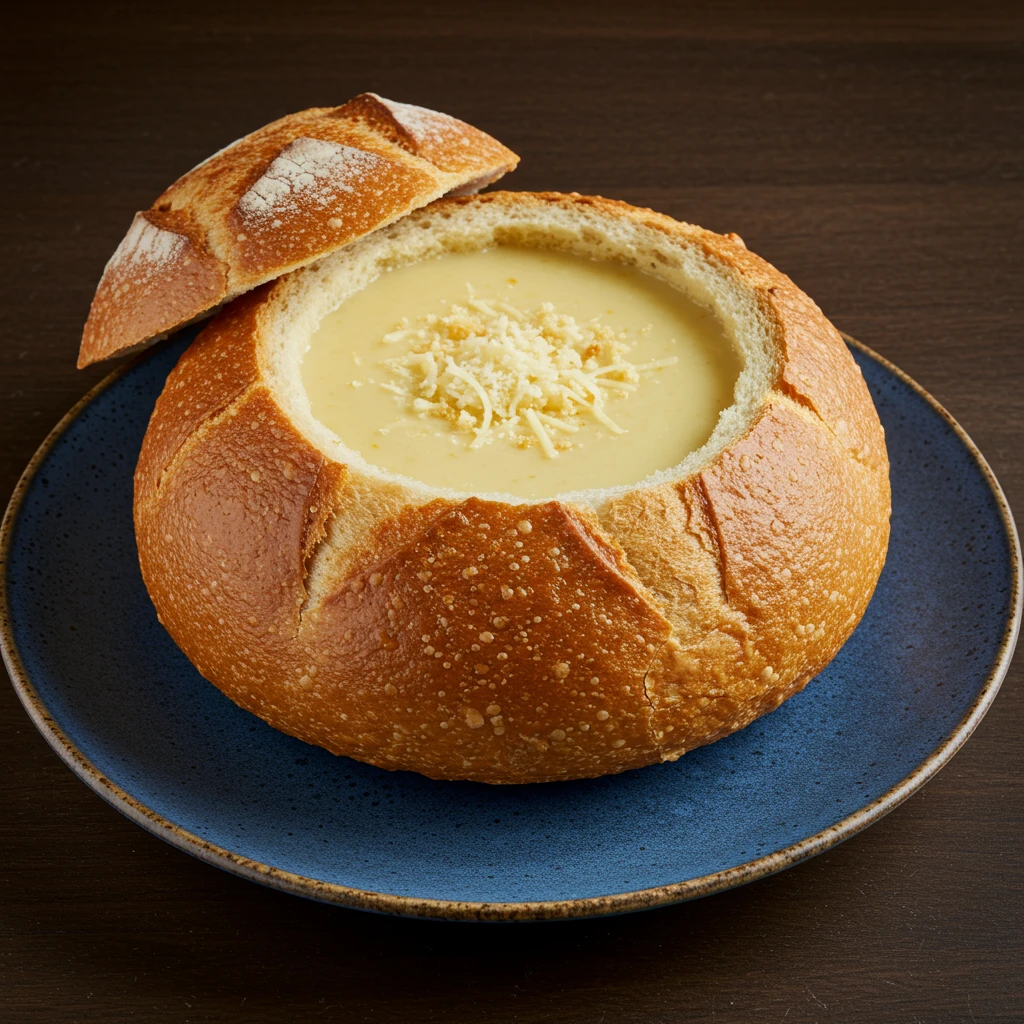 Uma combinação irresistível de queijos cremosos em um pão italiano quentinho. Uma sopa perfeita para uma noite fria, ideal para um jantar especial ou um encontro aconchegante.