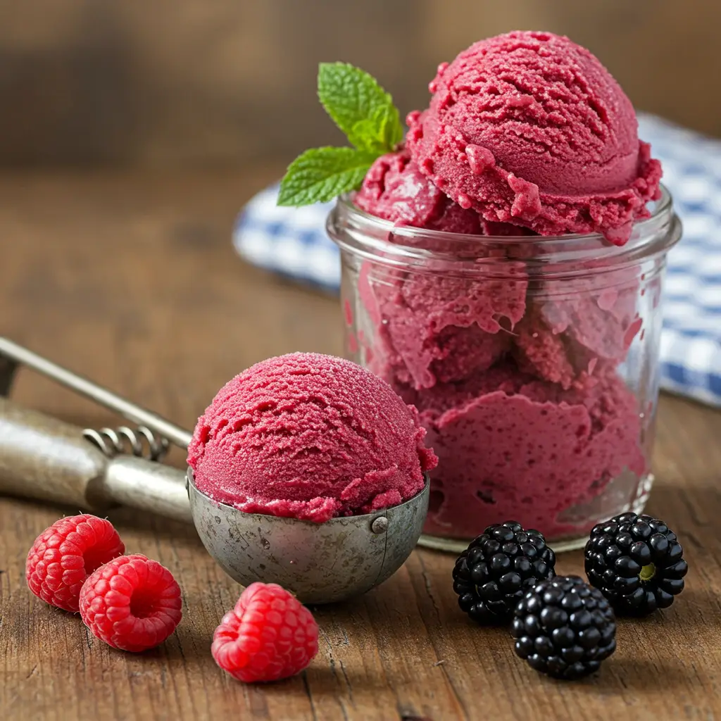 Um sorvete cremoso e refrescante, feito com a doçura natural das amoras. Perfeito para um dia quente ou uma sobremesa especial. A combinação de sabores é inesquecível!