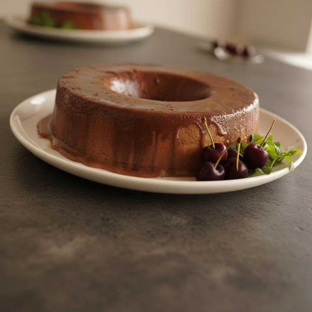 Prepare a calda: em uma forma com furo central, misture o achocolatado, a água e 1 colher de sopa de açúcar. Leve ao fogo brando, mexendo sempre, até caramelizar.
