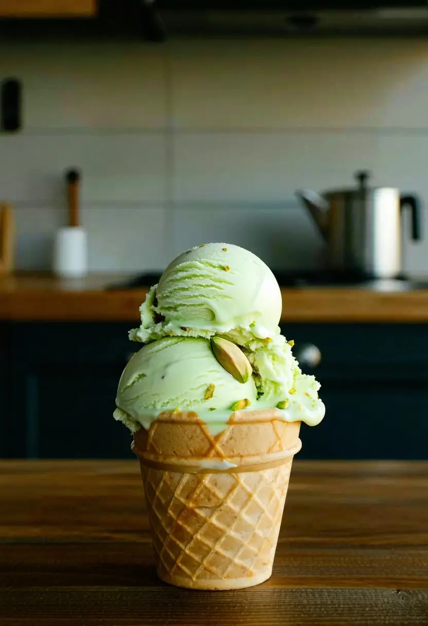 Sorvete Doce de Pistache: técnica perfeita para um sabor excepcional. Ingredientes selecionados garantem textura cremosa e rico aroma de pistache, resultado impecável para os paladares mais exigentes.