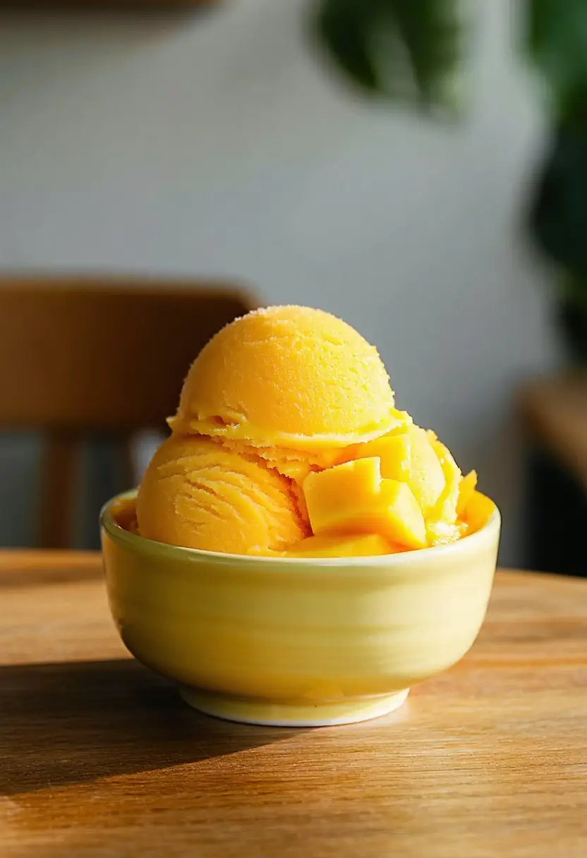 Sorvete de manga cremoso e refrescante, perfeito para o calor! Rende bem, é econômico e o sabor tropical te surpreenderá; sobra até para amanhã.