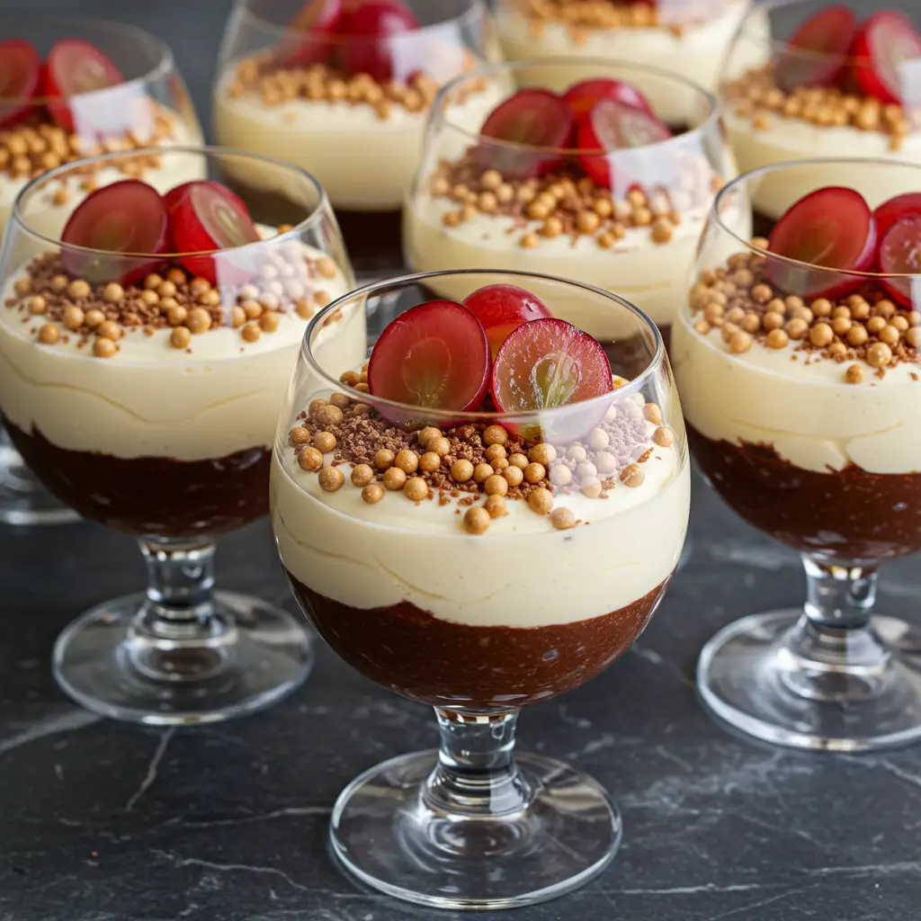 Uma sobremesa deliciosa e fácil de fazer! Camadas de brigadeiro cremoso, abacaxi suculento e uvas frescas, finalizada com chantilly e confeitos. Perfeita para um encontro especial ou um momento de puro prazer.