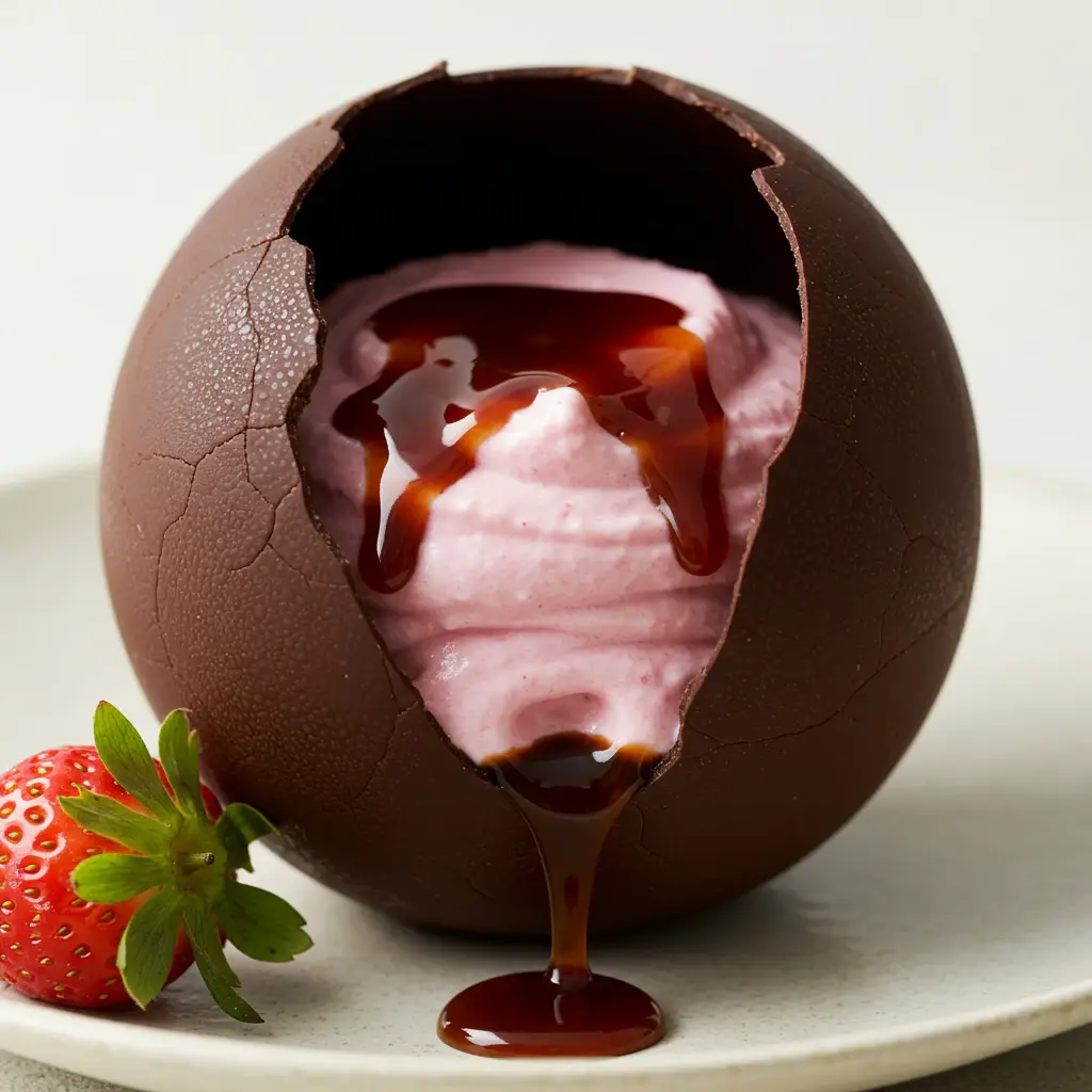 Recheie a taça de chocolate com o seu acompanhamento preferido (sorvete, mousse, frutas, etc).