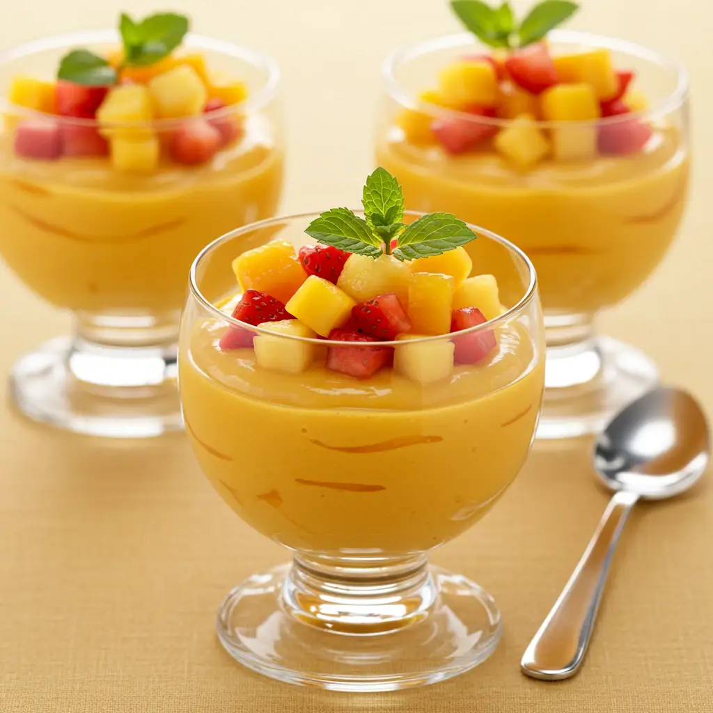 Um deleite tropical em taças individuais! Creme leve de manga com mel, combinado com a doçura de diversas frutas. Perfeito para um final de tarde ou sobremesa leve e refrescante.