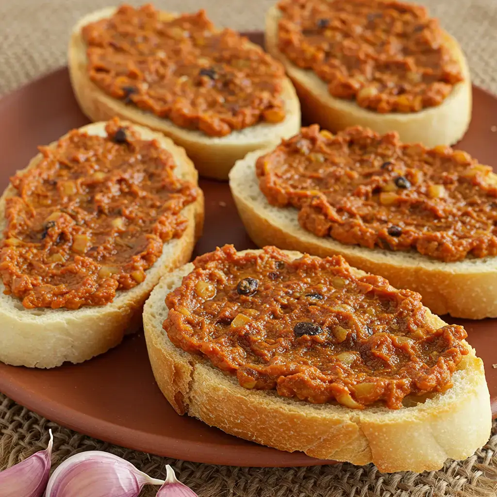 Uma entrada simples e saborosa, perfeita para um jantar informal ou um lanche rápido. O sabor intenso do alho e tomate fresco combina perfeitamente com o pão italiano crocante. Uma explosão de sabores mediterrâneos!
