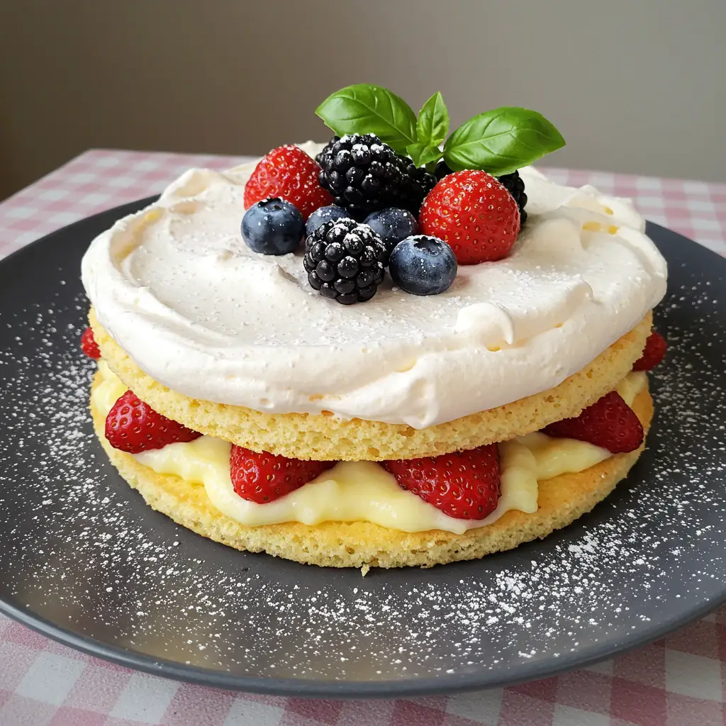 Deliciosa torre de fondue com camadas de massa crocante, queijo cremoso e suspiro leve, finalizada com frutas vermelhas frescas. Uma sobremesa sofisticada e irresistível!